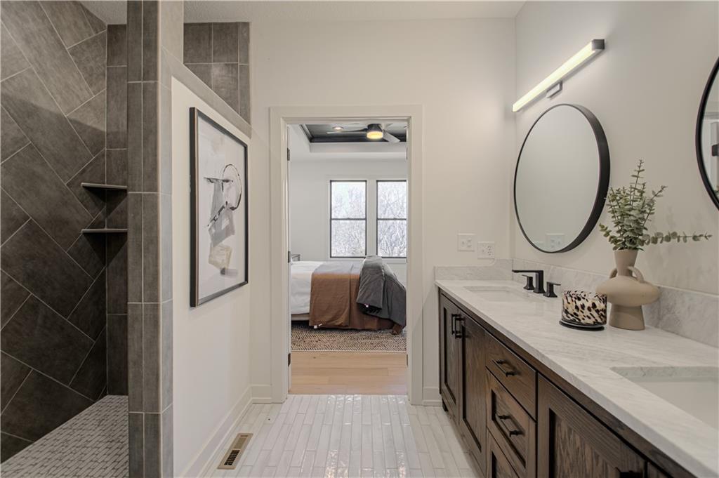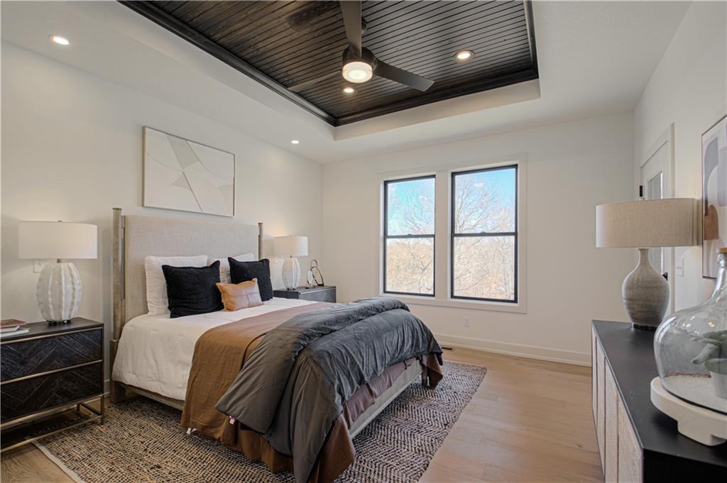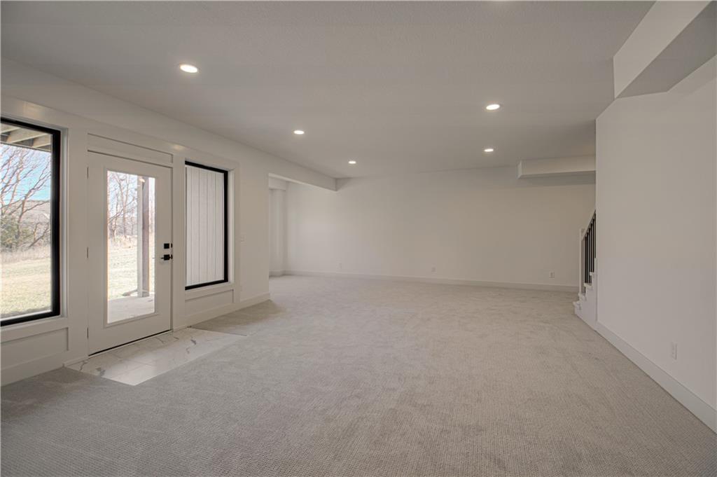 Move-In Ready! The Edgar Plan By Houston Home Builders is a Reverse 1.5 that boasts an Open Concept Main Floor and all one Level Living. With The Master Suite which walk out to the covered trek deck and Spa like bathroom which flows to oversized walk-in closet and the laundry. This home offers an additional bedroom and full bath on the main. With hardwood floors thru out the main and a large wall of windows to allow for natural light to view backyard that backs to green space. A chefs kitchen with Stunning custom cabinets, a large center island, and nice sized pantry- !Down to the full finished walk-out basement with a Rec room 2 additional bedrooms and a full bath with additional storage . This basement walks out to the backyard and allows for plenty of room for entertaining . This home is situated in a quiet cul-de-sac and backs to trees and green space. Located in The Running Horse Subdivision and Platte County School District, ready to call home!