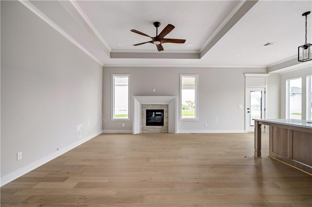 The Richmond by Gabriel Homes is an award winning 4 Bed 3 bath reverse 1.5 story home with a 3 car garage. This is the CONTEMPORARY ELEVATION filled with options and upgrades - extra windows, arched doorways, upgraded selections. This home is a STUNNER!!! This popular plan features an open & airy main-level with a wall of windows that lets in lots of natural light, open Great Room, Dining & Kitchen w/ island, large pantry & mudroom. Spacious Master Suite & 2nd bdrm with bath on main-level. Finished lower-level w/ large Rec Room with option to add a bar, 2 bdrms, full bath & loads of storage. HOME IS IN UNDER CONSTRUCTION, Estimated closing late 2025. Completed pictures are of a similar home. Prairie View at Creekside Woods is a new homes community w/ high-quality homes available now & new lots available. Feeds into premier Olathe Schools - Canyon Creek Elementary, Prairie Trail Middle and Olathe NW High School.