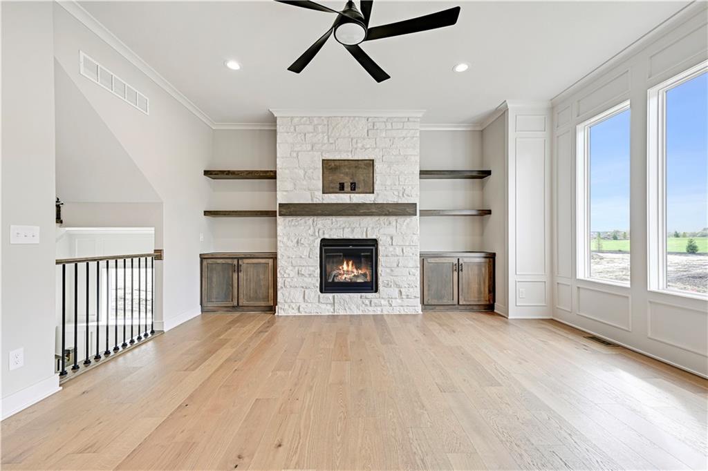 LOT 36 / Gabriel Homes' Makenna II Floor Plan. This 5 bed 4 full bath 2 story home welcomes guest with a stunning open main level! The Contemporary front elevation is elegantly modern! The openness and natural light invite family and friends into the center of the home. The Great room’s fireplace is flanked by built-ins, the perfect place to display books, art or other treasured possessions. From there, continue into the fully equipped kitchen with an oversized window over the kitchen sink that lets in plenty of light. Abundant upper and lower cabinets offer plenty of storage space for dishes, glassware and cookware. The kitchen also includes a large walk-in pantry, with abundant storage and shelving throughout. Welcome to another stunning Matt Adam Development new home community. The Sanctuary is laid out to protect the natural landscape, with homesites among the most beautiful in the area. In addition to the nature trails and sparkling creek winding its way through the community, residents will enjoy neighborhood amenities such as the Resident’s Club with indoor spaces and outdoor entertainment area, and a separate zero-entry pool with a sundeck to lounge the summer away. Two pickleball courts will provide hours of fun exercise for the everyone in the household! Located in South Johnson County across the street from award-winning Blue Valley Schools. Contact us soon to personalize this Makenna II floor plan today! Square footage and taxes are estimates. Finished photos are of a similar model, pricing, upgrades and finishes may vary from model shown.