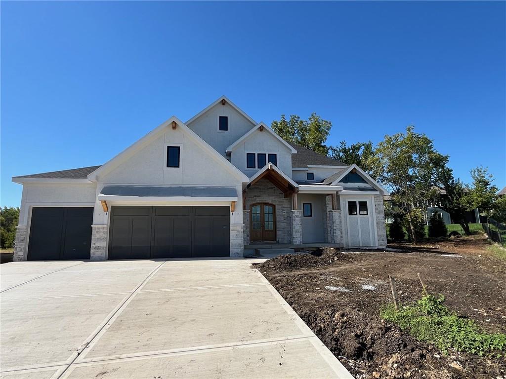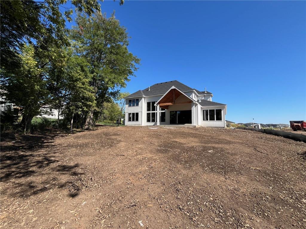 $75,000 Builder PROMO Price reduction! WOW! The stunning LARGER PLAN of the Maplewood Custom by JFE HOMES at the end of a private cul-de-sac with large trees in the backyard. Perfect private lot #216 is under construction with this unique expanded five bedroom 1.5 STORY plan for a DEC 2025 move in. This FAVORITE plan is a perfect fit for this pie shaped lot at the end of a cul-de-sac and the top of a rolling hillside in Overland Park. Come see the model home to see a finished Maplewood. You'll love this 1.5 Story plan with sliders to a walkout extended patio with shade trees already in place. The 1.5 Story plan is an expanded plan similar to the builders own home. All the 1.5 Story features you are searching for with a grand two story great room, floating staircase, main floor primary bedroom, 3 Bedrooms upstairs and a unique loft space. There is still time to make your custom design selections. Still time to add a basement finish of 1487 more square feet for a total of 5379 sf. **This home is currently UNDER CONSTRUCTION and photos are from the brand new model home. **Century Farms has a spectacular club house with a farmhouse twist ideal for neighborhood gatherings or private parties. It features a small prep area, fireplace, pub tables, reading loft and a fitness center. The large swimming pool includes a slide and is long enough for three competitive swim lanes. There are plenty of neighborhood activities with a fire-pit, two pickle-ball courts and a basketball hoop, farm themed animal kids play area, wildflower walkways and a community garden. Century Farms is conveniently located near the brand new Bluhawk shopping center, Heritage Park, the Johnson County Trail system and the Overland Park Arboretum. Come join the fun in Century Farms, a unique one of a kind upscale new home community in Overland Park. BLUE VALLEY SCHOOLS