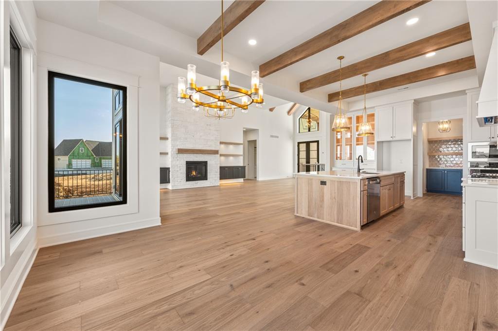READY!! You'll love this sought after Gunnison REVERSE by JFE HOMES with a X-Large sunken patio on Lot #182 in a private cul-de-sac. This ideal floor plan is a popular one with spacious main floor living at just over 2000 square feet on the main floor and a full finished walkout lower level for a total of 3596 finished square feet of living space. BONUS WASHER AND DRYER already installed by the BUILDER! SO many extra features in this home like the pocket office, elegant glass doors in the kitchen, large prep pantry, free standing tub, pull down bars in primary closet. This beautiful home is an award winning plan and loaded with upgraded features at this price. The BRAND NEW modern look includes extra windows, vertical wood accent posts with real stone trim. Built on a walkout/up lot with an AMAZING OUTDOOR sunken patio. MUST SEE! This home also features a covered deck with fireplace, double sliders that open from the great room providing plenty of light, a large great room with high ceilings and an oversized kitchen with island prep style walk in pantry. The perfect walkout lower level is finished and has a spacious living room with wet bar, TV accent wall, and two additional bedrooms and a fitness room. Still plenty of room for basement storage. Century Farms has a spectacular club house with a farmhouse twist ideal for neighborhood gatherings or private parties. It features a small prep area, fireplace, pub tables, reading loft and a fitness center. Large resort style swimming pool. There are plenty of neighborhood activities with a fire-pit, two pickle-ball courts and a basketball hoop, farm themed animal kids play area, wildflower walkways and a community garden. Century Farms is conveniently located near the brand new Bluhawk shopping center, Heritage Park, the Johnson County Trail system and the Overland Park Arboretum. Come join the fun in Century Farms, a unique one of a kind upscale new home community in Overland Park. BLUE VALLEY SCHOOLS