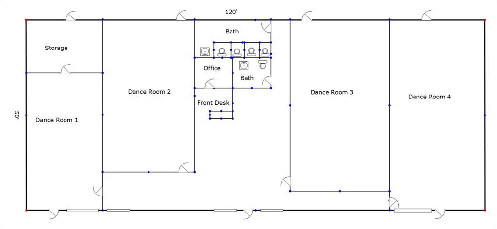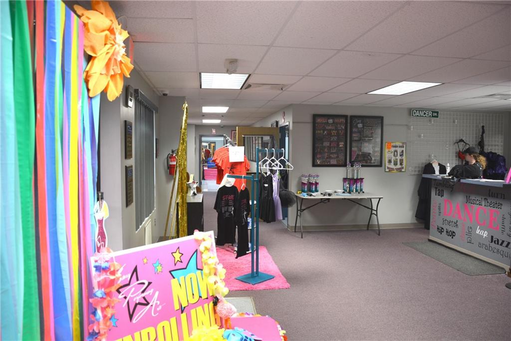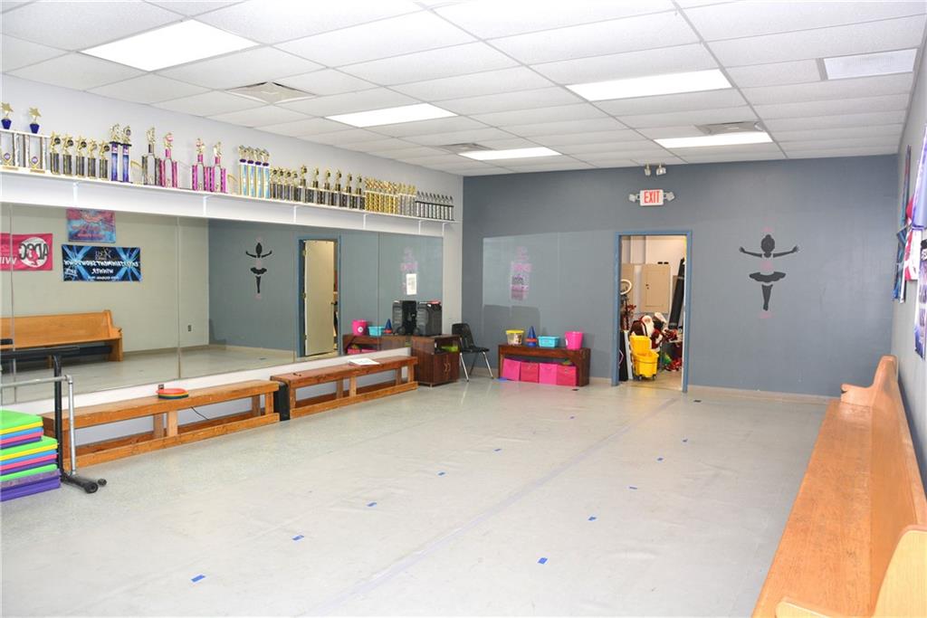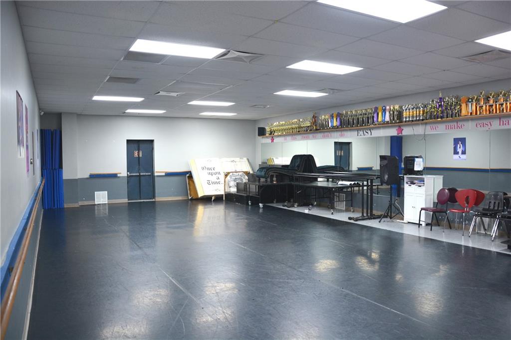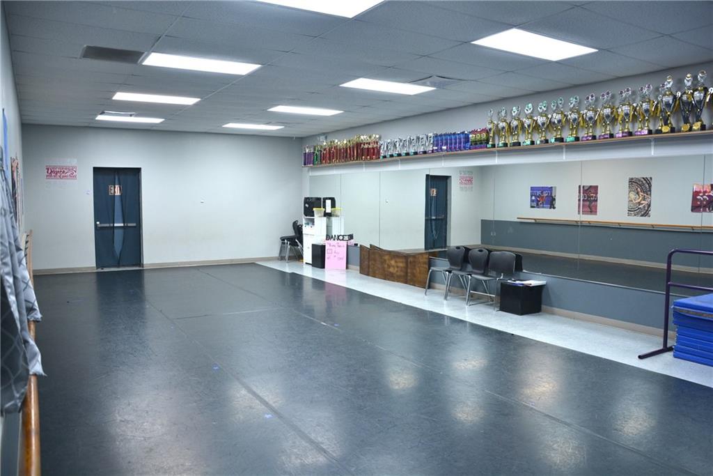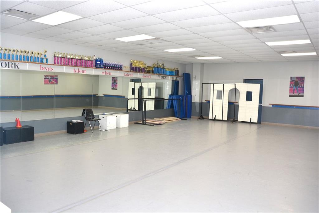 This building was originally built by the current owner, who also ran the studio. The business has since been sold to the current tenant, who now offers a variety of dance programs for all ages. A three-year lease is in place through October 2027, with an option to extend for another three years, including a rent increase. Showings must be scheduled before 3:00 PM on weekdays, with Saturday availability depending on event schedules. Ceiling heights are 8' in the lobby and restrooms, while all four dance rooms have 10' ceilings., price change was a typo