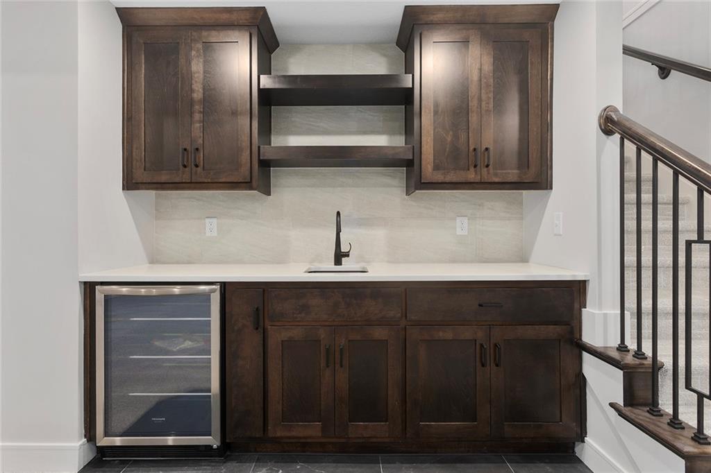 **MOVE-IN READY!** Welcome to the Catalina Reverse 1.5 plan by Crestwood Custom Homes! Fully loaded with options & upgrades. Quality & value you expect from Crestwood Custom Homes: Solid Birch cabinetry, extensive trim & ceiling details, Pella windows, all masonry stucco exterior walls, wood flooring & stunning quartz tops! Open concept plan with Kitchen, Great Room & Dining Room open to each other, tall ceilings, floor plan w/adjoining built-ins, kitchen island & walk-in pantry! Primary suite features a show-stopping, zero-entry, walk-in shower & bonus pull down clothes racks in spacious walk-in closet! Main floor also includes a versatile 2nd bedroom suite or Den & a covered deck! Finished lower level features 2 bedrooms, 1 bath, ample entertaining space & a full wet bar. 1st floor utility room adjoins primary closet & hall, battery back-up to sump pump, passive Radon pipe & sprinkler system. Photos updated on 12.2.2025. Home is NOW MOVE-IN READY!