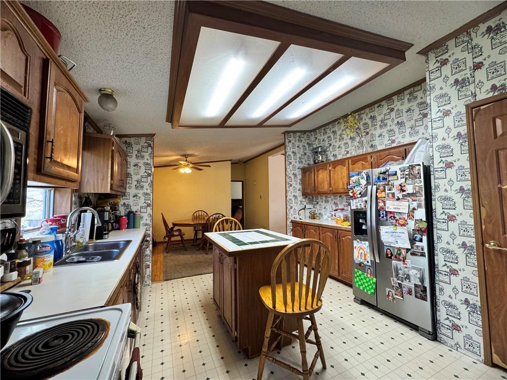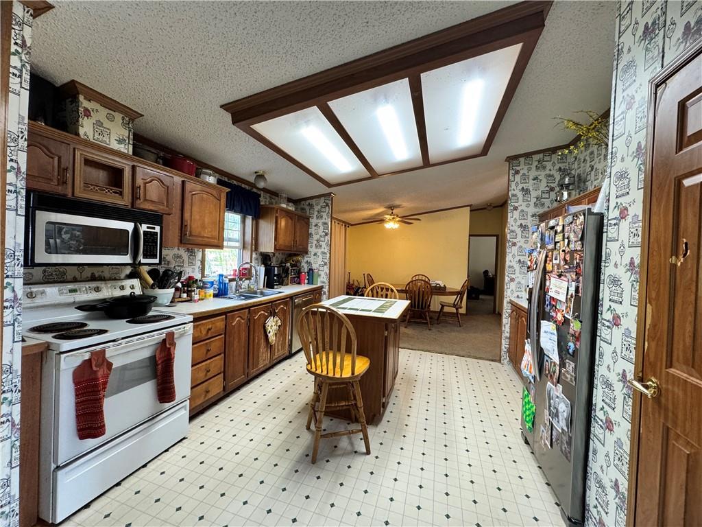 New Price Improvement!!! Seller is ready to make a deal! Bring your offers!! Charming Country Home with 12 Acres on Blacktop-Welcome to your country living dream! This spacious 3 bedroom, 2 bath home offers an ideal blend of comfort and functionality. The layout features an inviting office space and a spacious family room that seamlessly flows into a well-appointed kitchen. Enjoy meal preparations and gatherings around the stylish kitchen island, all kitchen appliances will be staying with the home, this space opens up to the dining room, perfect for hosting family dinners. This all flows into the large living room, where you have ample space. This home has 2000 square foot of living space. The full unfinished basement provides endless possibilities. 2 car garage opens to an extra large concrete pad that's great for convenience & play. The 12 acres has so much to offer, featuring a pond, perimeter fencing with additional cross fencing, this includes different lots for rotation of pastures. 2 nice sheds for storage of materials or animals, an additional small shed that can be used for all sorts of fun stuff. So many extras all waiting for you to make your own & take this property to the next level.