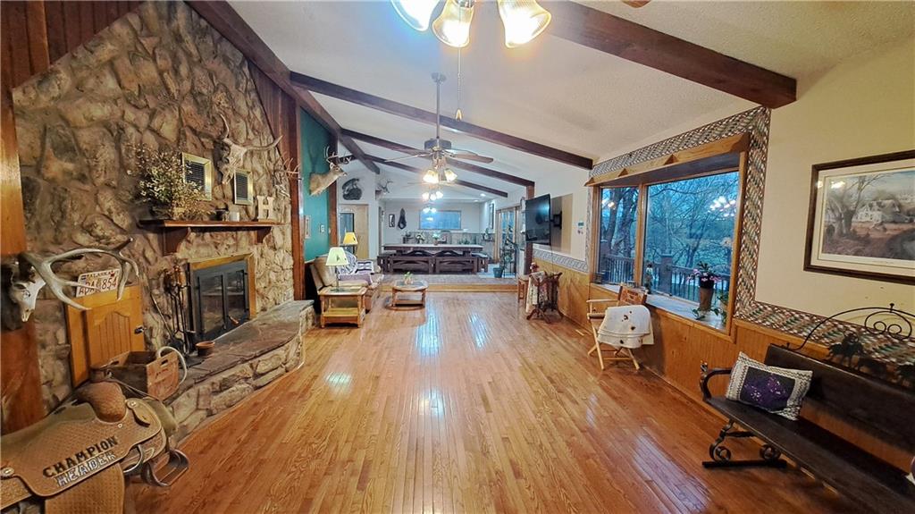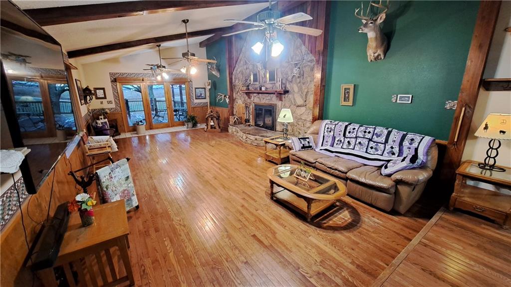 Nestled on approximately 6 acres of serene countryside, this one-of-a-kind home offers the perfect blend of rustic charm and modern convenience. The property boasts beautiful rock siding that enhances its unique character, while large oak and pine trees add to the tranquil setting. With sweeping views in every direction, this home is the ideal escape. The spacious three-car garage (40x30) provides ample storage and workspace, while the expansive deck is perfect for enjoying the stunning surroundings and entertaining guests. The walkout basement opens up to the lush yard, giving you easy access to nature's beauty just outside your door. Inside, the home features a grand open concept design with a large fireplace as the centerpiece of the front room, offering a cozy yet impressive space for relaxation. The dining room and kitchen flow seamlessly, creating a welcoming atmosphere for family gatherings and meals. The office area and mud room provide additional functional spaces to suit your needs. With four spacious bedrooms and three bathrooms, there is plenty of room for everyone. The full basement adds extra living space, perfect for a family room or recreational area. Whether you're seeking peace and quiet or a place to entertain, this property has it all. Come experience country living at its finest—schedule your showing today!