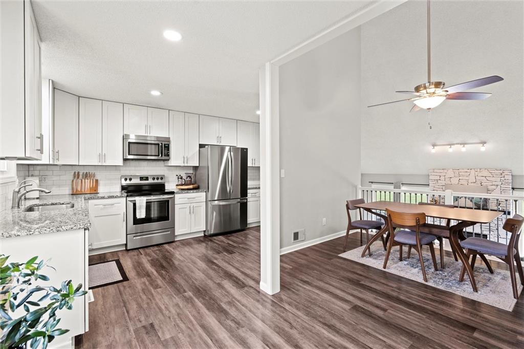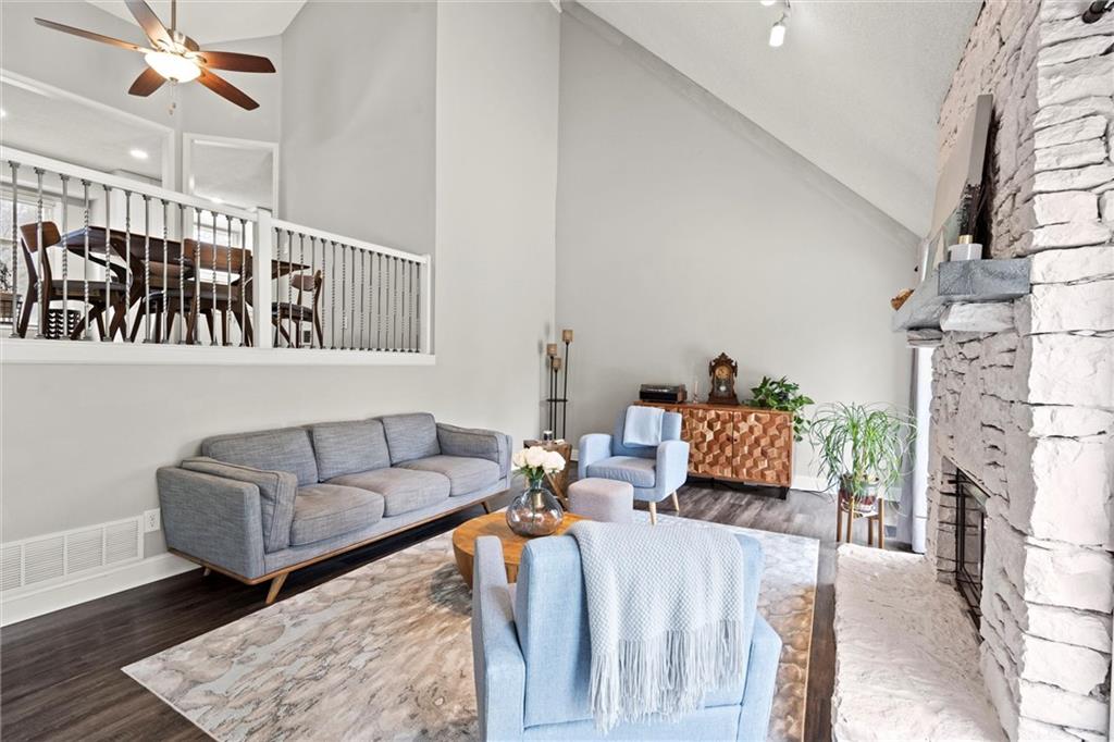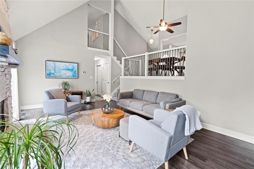 Price Improved! Welcome to a lifestyle of comfort, connection, and convenience in the sought-after Lakewood community. This stunning, move-in ready home isn’t just a place to live—it’s a place to thrive. From the moment you walk in, soaring vaulted ceilings and sun-filled spaces create a warm, inviting atmosphere. The updated kitchen—complete with pantry, beautiful flooring, and spacious dining area—is perfect for everything from quiet morning coffee to hosting friends and family. The heart of the home is the living room, where a floor-to-ceiling stone fireplace and oversized windows invite you to relax and recharge. The main-level primary suite is your own private retreat, featuring a walk-in closet and a spa-inspired bathroom with double vanities and a tiled walk-in shower. Upstairs, a flexible loft space, three more bedrooms, and a full bath offer room for everyone. The finished basement extends your living area with space to work, unwind, or gather—plus a convenient laundry room. Step outside and you’re instantly connected to nature and community. Your private patio backs to scenic walking trails leading to a peaceful cove and the neighborhood swim dock—perfect for kayaking, fishing, or morning strolls. Enjoy resort-style amenities right at your doorstep: multiple pools, playgrounds, walking trails, a clubhouse, and access to Lakewood’s award-winning golf course (membership optional). New price, same incredible lifestyle—schedule your showing today and fall in love with everything this home and community have to offer.