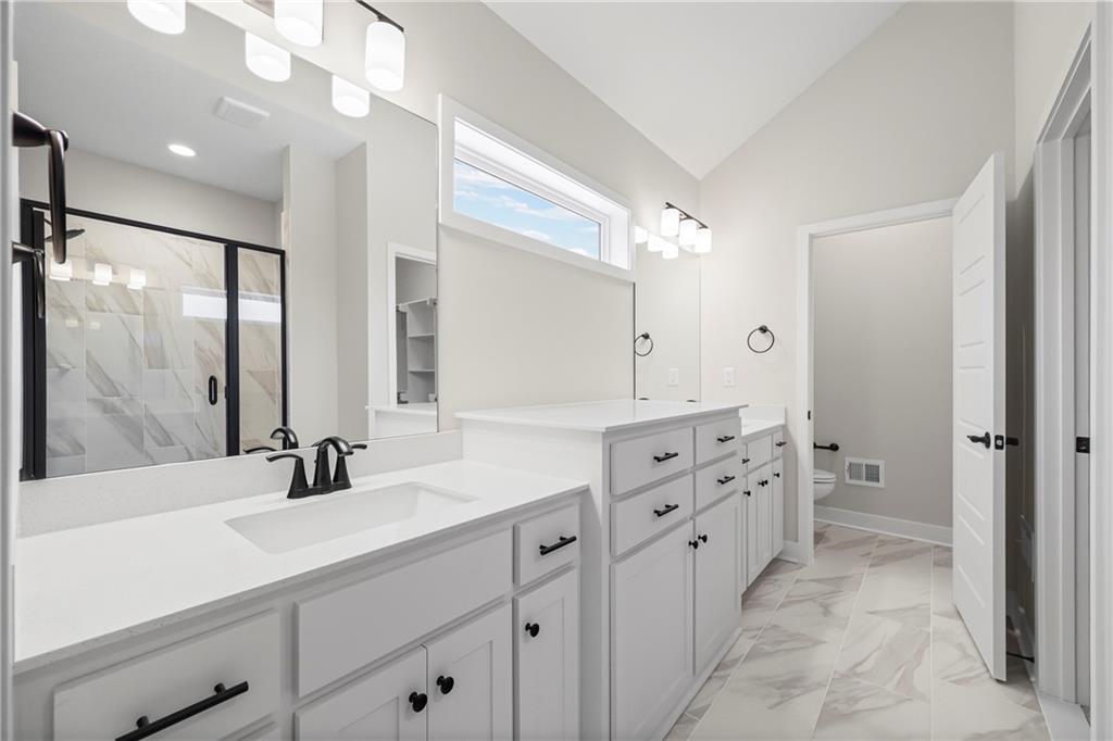 The Richmond by Hoffmann Custom Homes — a true ranch where stylish design meets effortless living. The home is complete; photos represent the property as built. The floor plan features a striking entryway, a spacious great room with soaring ceilings, and an open-concept kitchen with dark engineered hardwood floors, creamy white enameled cabinets, fresh modern lighting, and a large island topped with light quartz. A covered deck sits just off the dining area for convenient outdoor access. Built with 2x6 exterior wall construction, this home is engineered for durability and energy efficiency. It comes pre-wired for easy solar panel installation and includes an EV charger receptacle, and additional energy-efficient upgrades. A 10-year structural warranty provides added peace of mind. The lower level is stubbed for a future bathroom, offering flexibility for later expansion. Located within the top-rated Platte County School District.