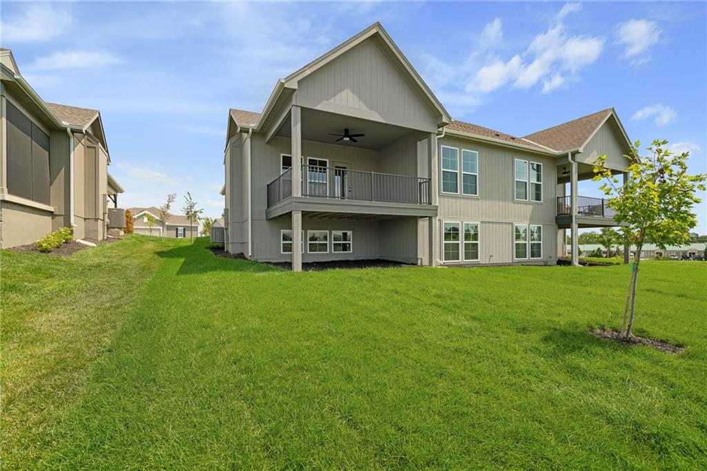 MOVE IN READY! Welcome to the Luxury Twin Villas in Lenexa's hottest neighborhood, Bristol Highlands Villas! Introducing the Newport Reverse plan by Lambie Homes on lot 44R, featuring maintenance-provided living. The Newport features 3 bedrooms, 3 bathrooms. Step into this open concept plan impressive Great Room with a vaulted, beamed ceiling, cozy fireplace, windows and door to the covered deck where you can relax or entertain. The heart of this home is the kitchen with soft-close drawers, stainless appliances, gas cooktop, microwave, oven, and dishwasher. Plus, find a pantry, gorgeous quartz countertops, & a sizable island to gather around. Unwind in the primary suite which boasts an impressive, vaulted ceiling, double doors to the bathroom, double vanity, tiled shower, & walk-in closet, conveniently connected to the laundry room. Builder is adding lower-level bedroom and bathroom. HIGH-END STANDARD FEATURES INCLUDE A 2-CAR GARAGE WITH OPENER & KEYPAD, 96% EFFICIENCY FURNACE, 14 SEER AC, 50-GAL. WATER HEATER, HUMIDIFIER, PRE-PIPING FOR RADON MITIGATION, CROWN MOLDING, TILE SURROUNDS IN ALL SHOWERS, & FULL-YARD IRRIGATION SYSTEM! AND DON'T FORGET ABOUT THE 1-YEAR BUILDER WARRANTY. Just minutes from easy highway access, Lenexa City Center, Lake Lenexa, Shawnee Mission Park, an array of restaurants and award-winning DeSoto schools. Stop by our twin Villa model at 8217 Aurora St. in Lenexa. Open daily 11-5 pm & Sunday 12-5 pm. Don't miss this stunning new home at this incredible price today!