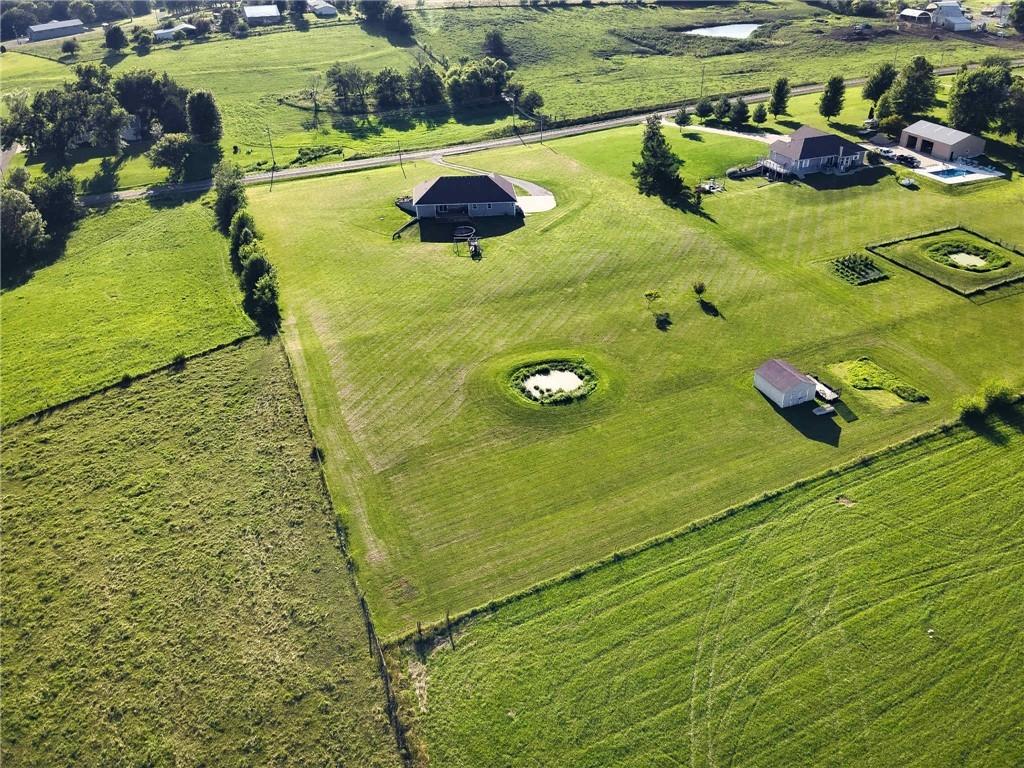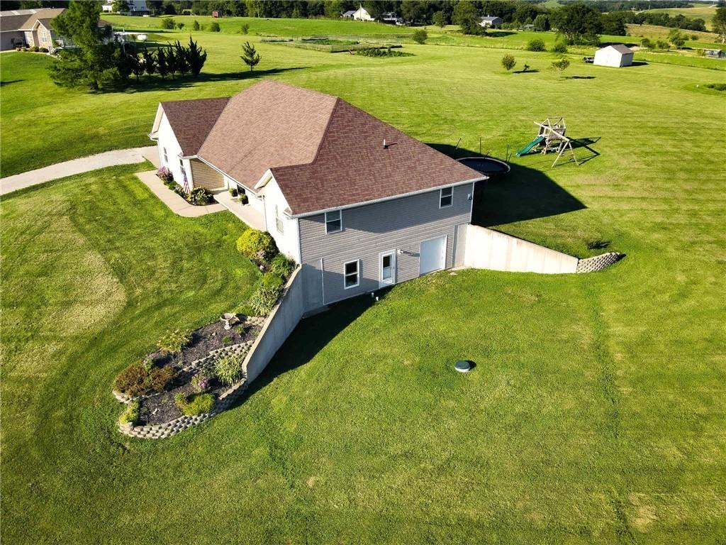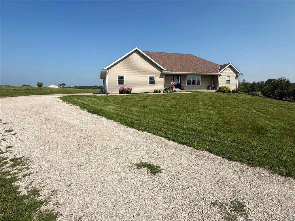 This is THE home you have been searching for!! Take in the beautiful country-side views at this one-owner property that sits on 3.23(+/-) acres. This home boasts an open floor plan with a cathedral ceiling, a stunning kitchen with custom cabinets, a 5 filter water filter at the kitchen sink, and a center island. The kitchen has all BRAND NEW stainless steel GE appliances!!! The living room offers large windows with lots of natural light. The master suite features a large walk-in closet and double vanities. Across from the master suite, you will find the main floor laundry room. The main level includes 2nd and 3rd bedrooms and the 2nd full bathroom. Access to the 2 car attached garage is from the main level. The lower level walk-out basement features 9' ceilings with a electric fireplace, beautiful stonework surrounding, and open shelving. A built-in bar with wet bar sink and cabinets will be perfect for your family get-togethers and entertainment needs! On the lower level you will also find the 4th bedroom and 3rd full bathroom, as well as a concrete storm shelter and large storage room. Attached garage on the lower level is the perfect place to store your lawn mower and yard care essentials. There is a storage shed on the property that stays that has water and electricity. The list could go on and on - this property checks all the boxes! Check it out today!