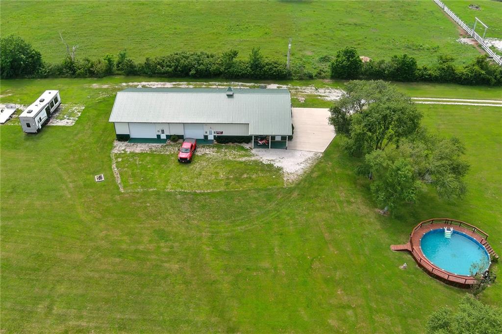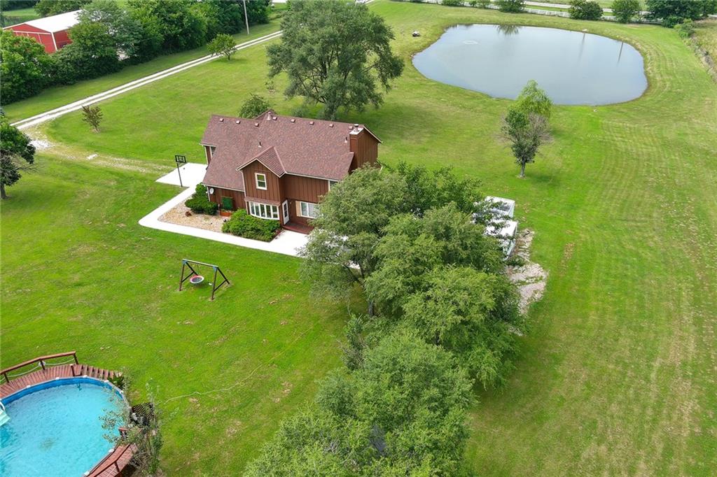 Versatile Estate with 4,400 Sq. Ft. Morton Building on 10 Scenic Acres in DeSoto, KS Unlock the potential of this exceptional property—perfect for entrepreneurs, hobbyists, or anyone seeking space to live, work, and play. Set on 10 gently rolling acres, this gated estate offers a mix of open pasture, mature trees, and a peaceful stocked pond. The land is well-suited for livestock, gardening, recreational use, or future outbuildings—giving you room to grow and the flexibility to create your vision. The standout feature is the impressive 4,400 sq. ft. Morton building, complete with heat, AC, a loft, and a full bath with a whirlpool tub. Whether you're running a small business, storing equipment, restoring cars, or simply need serious workshop space, this structure offers unmatched versatility. The two-story home combines modern comforts with country charm, featuring granite countertops, hardwood floors, and a spacious layout with four bedrooms and four bathrooms. Outside, enjoy serene views, a sparkling pool, and mature fruit trees that add to the estate’s character and functionality. Located just minutes from K-10, this unique property blends rural tranquility with easy city access—ideal for work-from-home lifestyles or business operations.