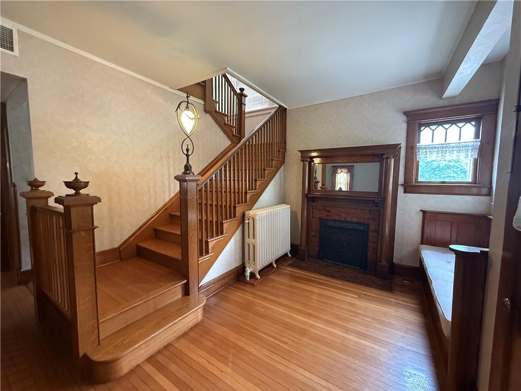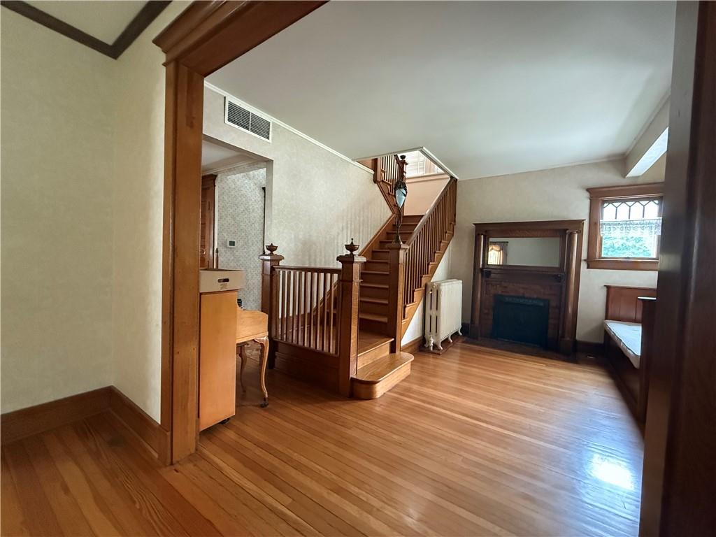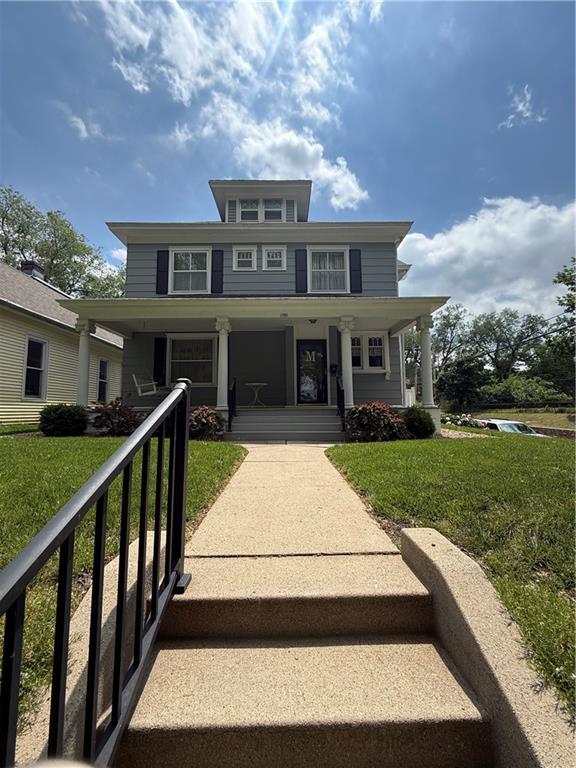 PRICE REDUCTION! Open House Saturday, Ocotober 18th 1pm to 3pm. Welcome to this charming two-story home, where classic character meets modern comfort. A full-length front porch invites you in, perfect for relaxing evenings or morning coffee. Inside, you'll find a warm and inviting interior featuring original wood trim, pocket doors, and thoughtful details that add timeless appeal. Spacious living and family rooms on the main level offer plenty of space for everyday living and entertaining. The beautifully remodeled kitchen opens to a bright sunroom filled with natural light—an ideal spot to relax or gather with guests. Upstairs, you'll find four generously sized bedrooms, a full bath, and convenient second-floor laundry. Start your mornings right with the luxury of a heated bathroom floor. The finished basement expands your living space with a large recreation room and a second full bath—perfect for movie nights, hobbies, or hosting visitors. Step outside to your private, park-like backyard, fully enclosed by a white privacy fence. Whether you're entertaining or simply unwinding, this outdoor retreat offers peace, beauty, and room to enjoy.