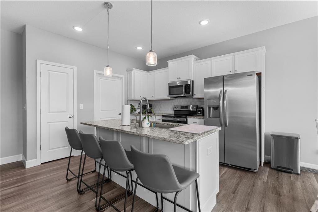 You won’t want to miss this stunning Redbud by Ashlar Homes—beautifully designed for comfort, style, and functionality. This home offers 3 spacious bedrooms and 2 full baths on the main level, along with a 3-car garage. Step inside to a warm and inviting living room featuring a fireplace with a wood mantle, and enjoy the open-concept kitchen with an island, walk-in pantry, and covered patio—perfect for entertaining. Luxury vinyl plank flooring extends through the front entry, living room, kitchen, dining area, and mudroom, while both main-level bathrooms feature elegant tile flooring. The primary suite is a true retreat with a bay window, a full bath with double vanity, a tiled shower with a built-in seat, and a walk-in closet. High-end finishes are found throughout, including granite or quartz countertops, window blinds in finished areas, soft-close drawers and cabinets in the kitchen, and garage door openers. The basement is stubbed for a full bath, providing excellent potential for future expansion.
