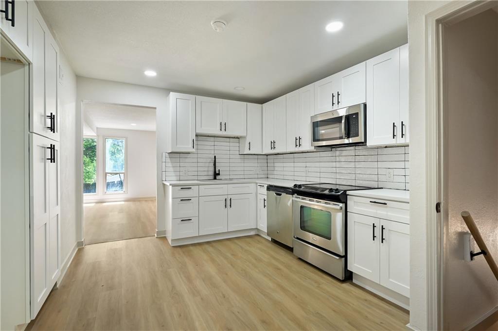 MAJOR PRICE DECREASE on a great home!! MOTIVATED SELLER! BRAND NEW HVAC UNITS and TONS of living space for a large household. You will love this beautifully renovated 5-bedroom, 2-bathroom home with almost 3,000 square feet (including the basement). Tucked away at the end of a quiet dead-end street, this home is offering privacy and peaceful views of the open field next door. With a spacious layout and updates throughout, this home is move-in ready. The entire interior has been redone! New flooring, new trim and doors, many updated windows, plumbing, updated electric panel, and fresh paint throughout. Kitchen has been updated with quartz countertops, brand-new cabinets, modern backsplash, and newer kitchen appliances. Both bathrooms have been completely remodeled with new vanities, tile, and modern fixtures for a contemporary feel. On the main floor, there are TWO separate living rooms for versatile use. Upstairs features a loft-style bedroom with walk-in closet, while the finished basement includes an additional bedroom and closet, a THIRD large living space, and huge laundry room with plenty of storage as well as a bar area. Buyer will also enjoy the peace of mind, with brand new HVAC units with a 10 year transferrable warranty! The spacious fenced in backyard is a blank canvas, ready for your personal touch—think garden, patio, or play area. Schedule a showing today!