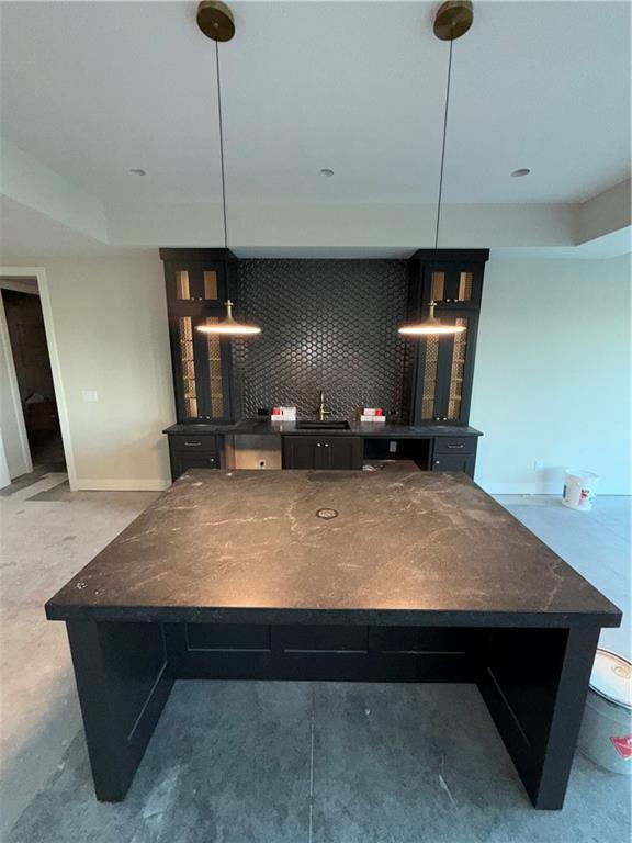 Experience luxury living in this stunning Reverse 1.5 Story home, nestled on a sprawling 1.04-acre estate lot. Enjoy a spacious layout with 4 bedrooms, 4 full baths, 2 half baths, and an oversized 3-car suspended garage. Premium features include Pella Impervia windows, 8' interior doors, and a luxury appliance package. Entertain effortlessly in the walkout lower level, complete with a speakeasy/wine room and wet bar, or relax on the suspended patio. Convenience is key with a main-level office, a coffee station & 2nd fridge in oversized pantry, and a laundry sink station. The home also includes a high-capacity 400A service (for possible future pool) and features engineered wood flooring on the main level and LVP in the lower level, Entry & Great Room are graced with cathedral vaulted ceilings. Main Level Primary Suite and ALL bedrooms have private bath & walk in closet.