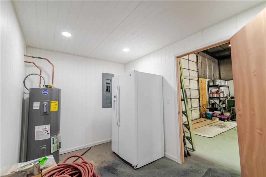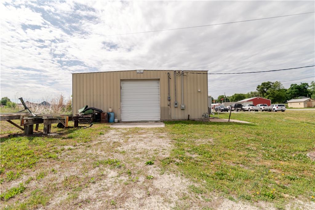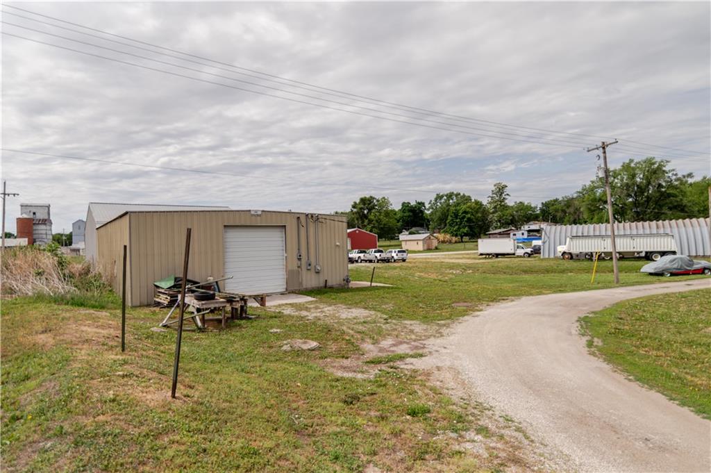 Commercial Office & Shop Space – Hiawatha, Kansas This versatile commercial property in Hiawatha, Kansas, offers an excellent opportunity for small businesses, trades, or service providers looking for a combined office and warehouse/shop space. The building features a clean, functional exterior with two large overhead garage doors—ideal for equipment access or vehicle entry. Inside, the office space greets visitors with a unique rustic-industrial aesthetic. It includes a front reception area with a solid wood counter, durable flooring, and a standout corrugated metal ceiling that gives the space a distinctive character. The walls are freshly painted and well-lit, creating a welcoming yet professional environment for clients and staff alike. With ample parking, easy access, and a layout suited to a variety of commercial uses, this property is a practical and stylish choice for your business headquarters or operations hub in Brown County.