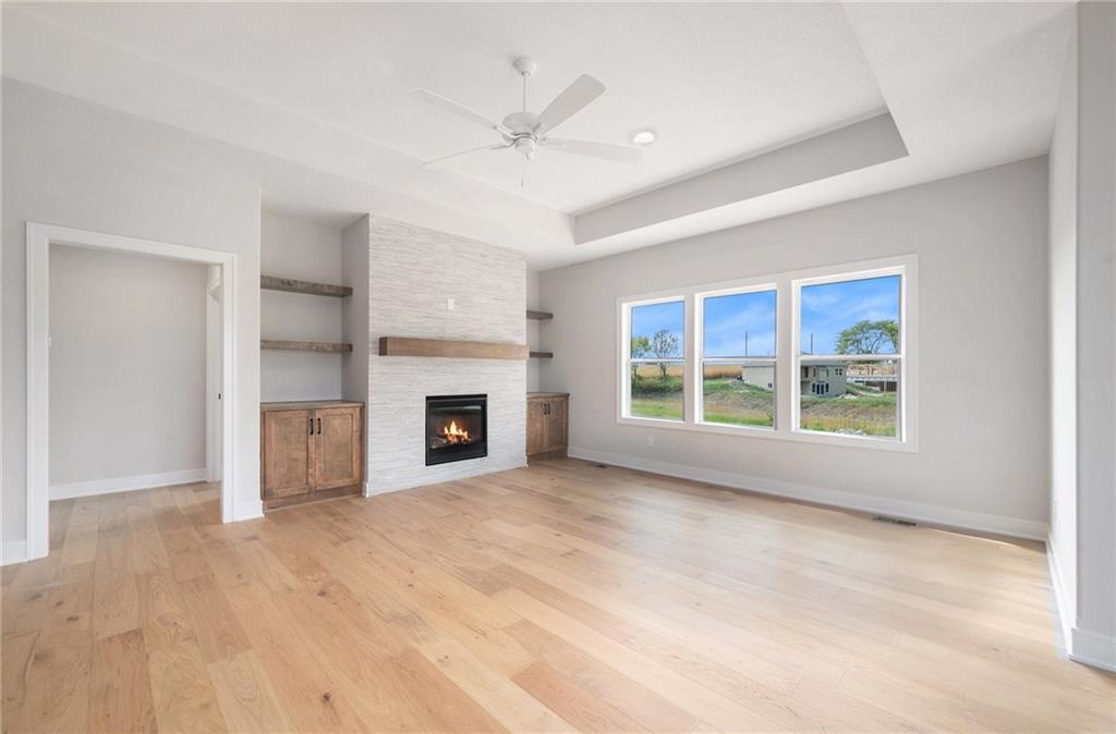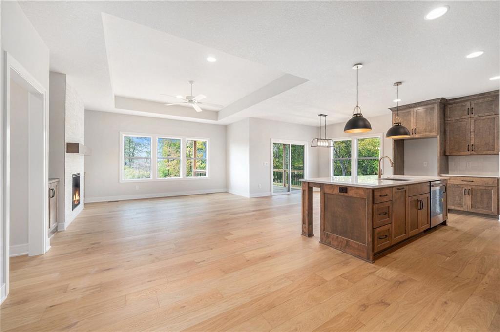 Completed – The Wyndham by Crestline Builders | Backing to Lawson Golf Course Welcome to The Wyndham by Crestline Builders, a stunning new reverse 1.5 story home thoughtfully designed to combine style, comfort, and functionality. Step inside and be greeted by a custom entryway that sets the tone for the quality and craftsmanship throughout. Down the hall, the open-concept living, kitchen, and dining space is sure to wow you! Light wood floors expand across the main level, highlighting a custom fireplace with decorative shelving and cabinetry. The designer kitchen features a stunning elongated island with seating for casual meals, a walk-in pantry large enough to impress any chef, and a dining area with access to the covered deck—perfect for seamless indoor-outdoor living. The primary suite offers a private retreat with an exceptional ensuite showcasing dual sink vanities with center storage, a custom walk-in shower, and a massive walk-in closet. Two secondary bedrooms, a full bath, and the laundry room complete the front wing of the home. The unfinished walkout basement offers endless potential for additional bedrooms, bathrooms, and recreation space—ready for your finishing touch. Set on a lot backing to the scenic Lawson Golf Course, this location offers a beautiful balance of tranquility and recreation right in your backyard. With approximately 1,850 square feet on the main level, a 3-car garage, and quality finishes throughout, this home is truly move-in ready. Don’t wait—make The Wyndham your new home today!