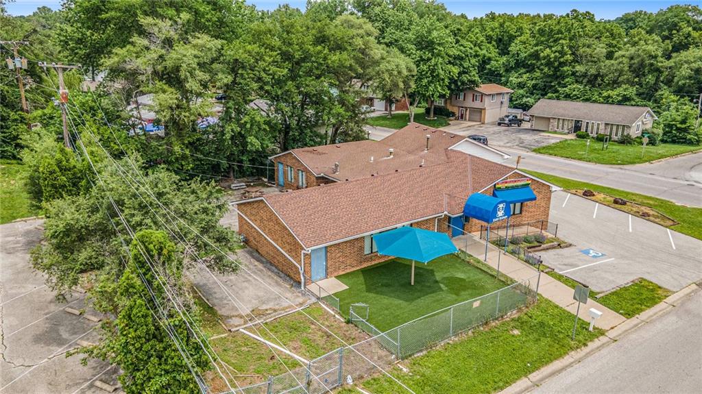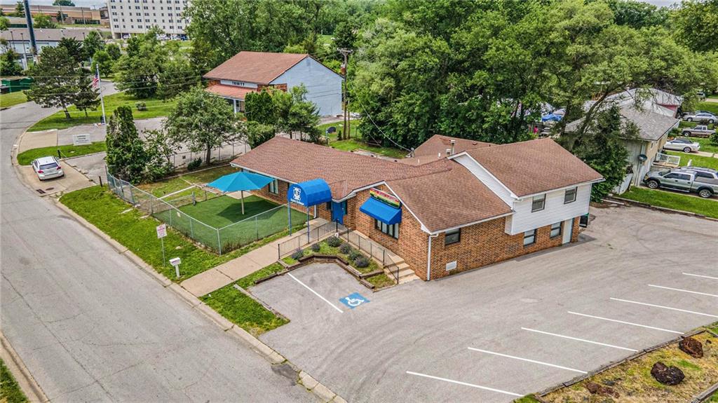 Amazing location at the corner of State Ave and Nebraska Ave, just 1 mile from I -70.  With a front reception area and 7 entrance/ exit doors, this commercial property has potential for multiple endeavors.  There is a modern finished office space with a private bathroom.  There is a fully remodeled retail space on the west side of the building with 3 exit doors including a turfed outside area.  The Community Kitchen is centrally located and appliances are negotiable.  There is a laundry room and 5+ bathrooms throughout.  Quality roller shades on all the windows are included.   Plenty of parking on the east side of the building and a large paved lot on the backside which could be converted to extra parking or add a shop. Tons of storage space that could be remodeled for commercial tenants. Gas furnace and electric AC were replaced in 2023. Water heater was replaced in 2020.Finishes are needed for some portions of this property.  Personal property and appliances are negotiable