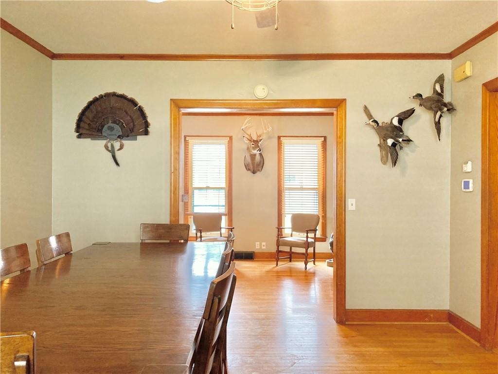 Tidy and traditional home on a quiet street! Move in ready OR great investment lodging opportunity! With beautiful hardwood floors and original woodwork, this property offers 4 spacious bedrooms with the primary suite on the main floor, an additional non conforming bedroom, full baths in the basement, main, and second floors, and a half bath on the mail level. You’ll find a large kitchen with plenty of space for cooking and eating on the other side of the charming walk through pantry, and a formal dining room, sitting room, and family room great for entertaining. A functional mud room off the back door makes this property excellent for high traffic, and the fenced in back patio is a great space for larger company. New upstairs shower, new roof in 2022, new AC blower motor and inside/outside unit in the last two years, and lots of maintenance to various systems and features. So much to offer in this small town home! Come see for yourself!