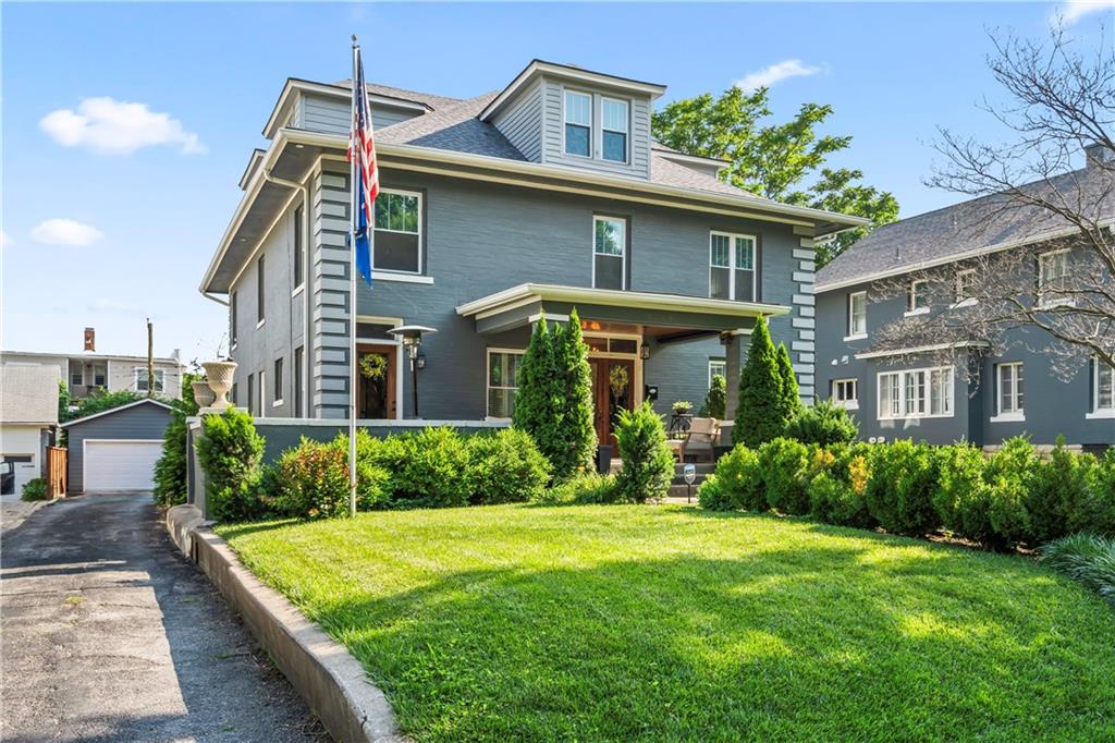 Breathtaking 1910 American Foursquare style home on beloved tree-lined street in the Downtown Historic District of Scarritt Point. Enjoy a lifestyle of convenience with award-winning restaurants and splendid entertainment just outside your door. This luxurious residence offers a light-filled interior with rich hardwoods, custom millwork, premium fixtures and a monumental sense of openness and grandeur. Impeccably designed to capture the beauty and grace of this stately architectural style. The gracious formal entry, accentuated by classic mouldings and symmetry, offers an elegant connection between the main living spaces. The grand scaled dining parlor features french doors, exquisite lighting and a captivating bay of huge windows. The expansive and well-appointed kitchen is designed to maximize space and functionality. An entertainer’s dream come true, offering an abundance of cabinetry, large island with breakfast counter, granite countertops and a secondary informal dining space. The stately library, cloaked in a rich dark hue, offers a convenient side entry and a chic powder room is discreetly tucked away beside the entry hall. Main level also includes a spacious guest suite. Private quarters include a formal corridor, three secondary bedrooms and an expansive primary suite with lavish bath and large walk-in closet with laundry hookups. Third level is a large recreation space of contemporary design with full bath and panoramic views. Nothing has been overlooked in this meticulous 4900sf home. All mechanicals have been replaced including zoned hvac. Outdoor space includes a fully fenced backyard, huge front sitting porch and a detached two car garage. Located just one block south of the illustrious Kansas City Museum near Downtown amenities. Welcome home to coveted Scarritt Point, a neighborhood with timeless charm and a true sense of community. Listing agent is related to the seller.