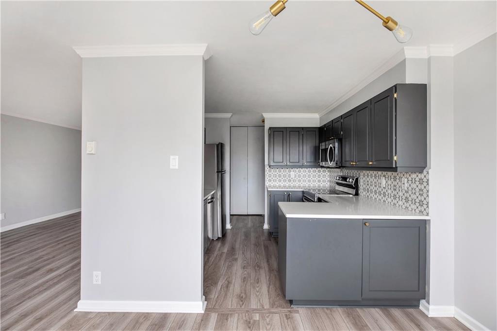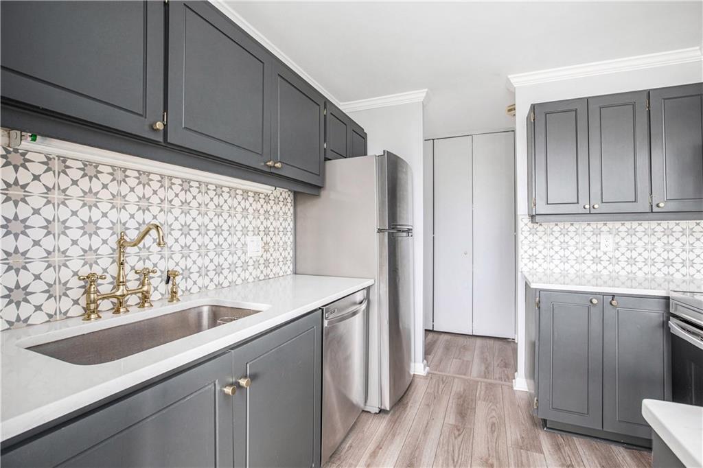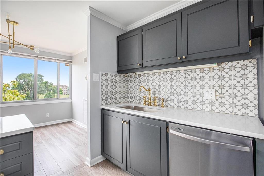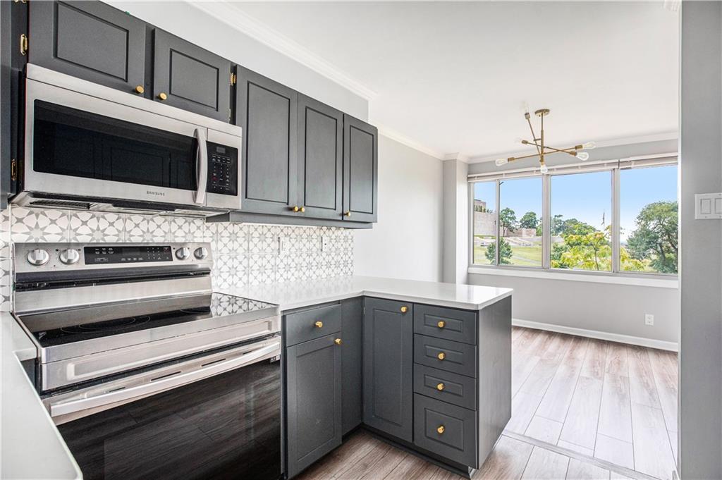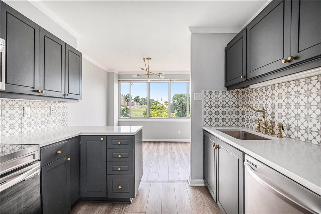 Fully updated 1 bedroom & 1 bathroom condo located on the 3rd floor in the Santa Fe Place Condominiums. Experience amazing views of Penn Valley Park & Down Town Kansas City. This beautiful condo has an abundance of natural light throughout. Step inside to experience wood floors, light and bright colors, and a generous sized balcony to enjoy the peaceful views. Expansive living room opens to spacious dining area and fabulous kitchen. Kitchen boasts quartz countertops, SS appliances, plenty of cabinet space, and brass hardware. Laundry is located in the bedroom. Bathroom features shower over tub, quartz countertops, and plenty of counter space. Enjoy all of the amenities the building has to offer. Enjoy the swimming pool, tennis court, garden area, party room, exercise room, storage space, and more. Monday through Friday 8 to 5 front desk man and one parking space with unit. Unbeatable location. Walking distance to Crown Center, Down Town KC, Union Station, and so much more.. Great covered parking spot comes with the unit. This is a win win!
