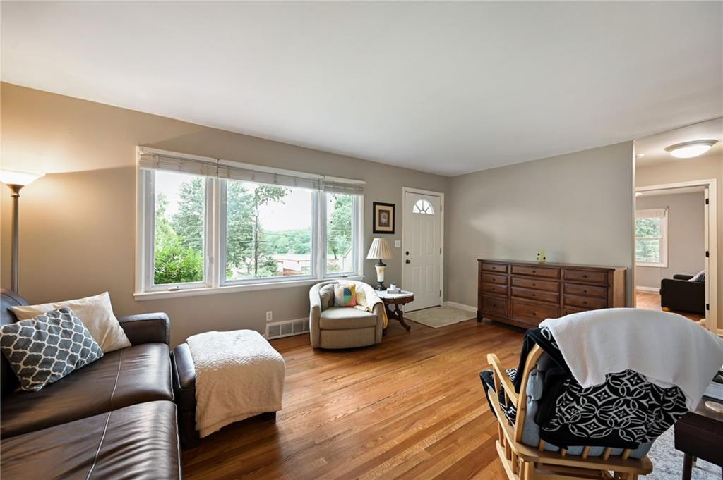 Don't miss this amazing second tier property with a unique view of the lake. This home is well maintained and has a great back deck with a yard backing to trees. The finished basement has a wet bar and lots of extra space and a full bath. The kitchen has nice stone countertops to bring the kitchen to a modern style and refinished hardwoods on the full main level. You will regret it if you let this affordable gem pass you by.