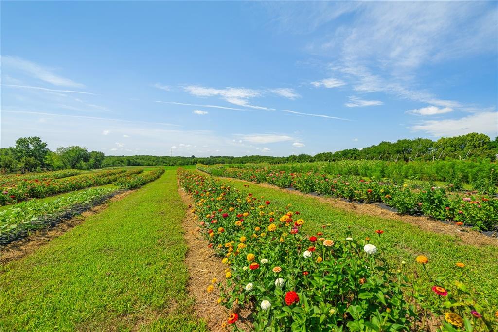 Incredible Opportunity to Own a Regenerative Farm and Orchard Just 30 Minutes from Downtown Kansas City! Nestled on nearly 40 acres, this unique agri-business offers the perfect blend of lifestyle and income potential. The property features a brick, three-bedroom ranch home, an established orchard, berry patch, wildflower field, new 70' x 150' metal building, multiple livestock pens, and 8-foot perimeter fencing with a gated entrance for privacy and security. A true destination, the farm has hosted a variety of community events, including concerts, apple picking, U-pick berry days, a summer solstice festival, educational tours, workshops, private parties, and more. Families love the kid’s play area complete with a playground and bounce pillow. Located in Blue Springs with coveted Lee’s Summit schools, this property offers the rare chance to live and work in one place while enjoying a top-tier school district. The farm has also benefited from a synergistic relationship with a well-known nursery business directly across the street. Offered as three parcels sold together, this is a rare, one-of-a-kind opportunity with limitless potential—whether you continue the current operations or reimagine the property for your own vision.