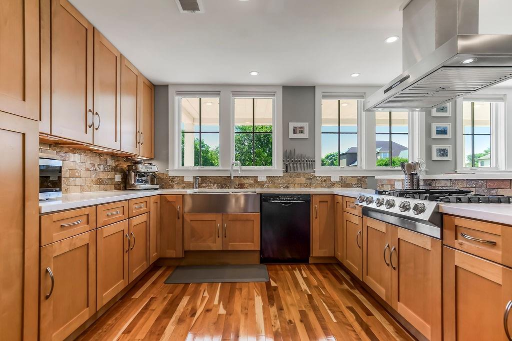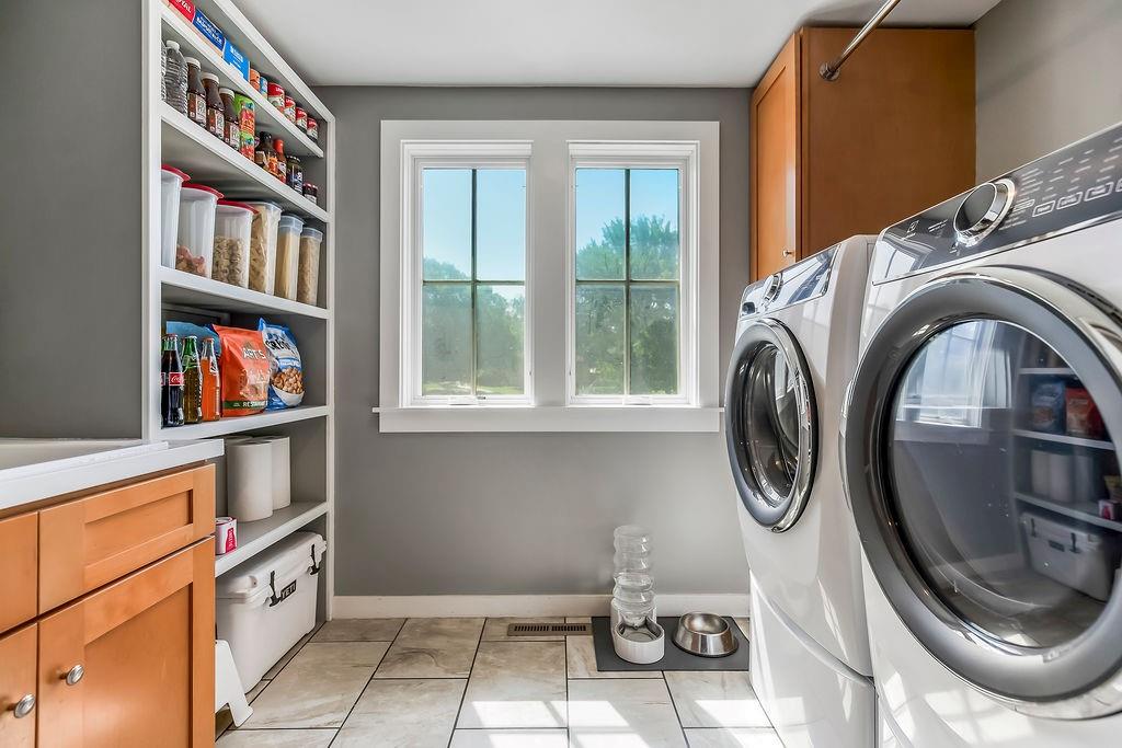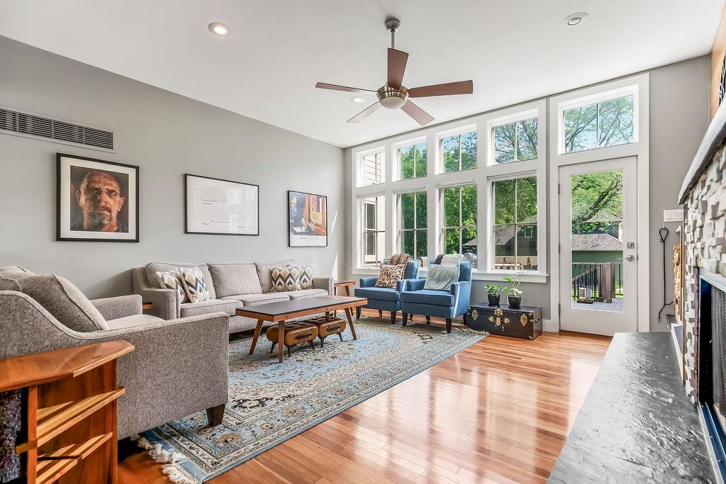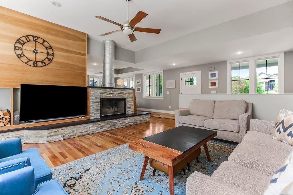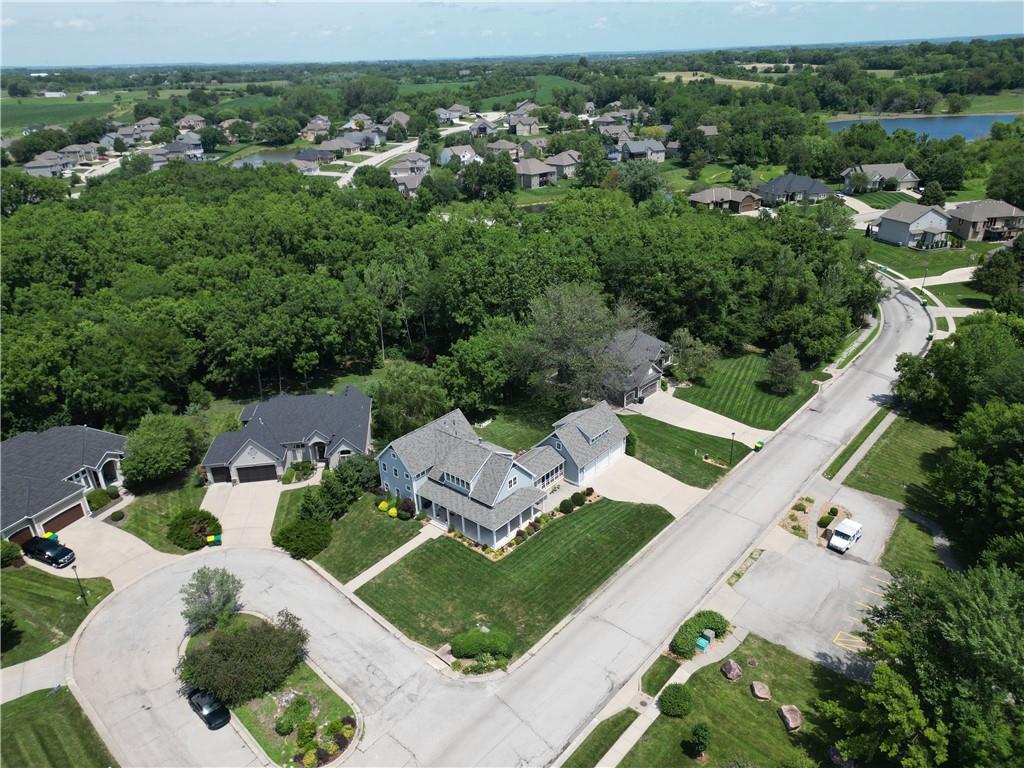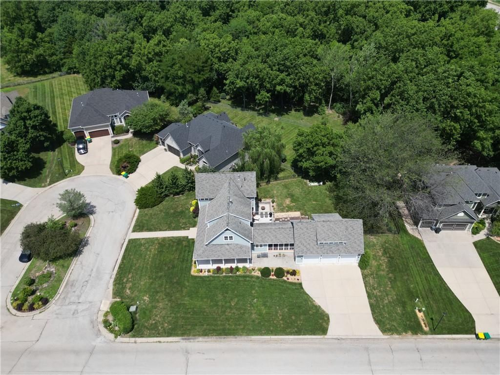 Nestled in the desirable Whispering Pines Estates, this spectacular custom home offers an unparalleled living experience, thoughtfully designed with attention to every detail. The unique open layout flows seamlessly, featuring an inviting great room with soaring 10’ ceilings and a cozy wood-burning fireplace, ideal for family gatherings and entertaining. The chef’s kitchen is a culinary delight, with high-end appliances, double oven, and gas stove. Just off the kitchen, savor your morning coffee or an evening cocktail on the screened-in porch while taking in the views. Enjoy formal meals in the dining room or relax in the comfortable formal living area. A main-level master suite and laundry room offer ultimate convenience. Upstairs are two generous bedrooms with walk-in closets, the second full bath, and a spacious recreation room. The walk-out lower level offers additional living space with a family room, a wet bar, a third full bath, and ample storage. Above the 3-car garage, a versatile finished space awaits, currently a private studio – perfect as a home office, or a desirable 4th bedroom. Beyond the walls of this magnificent home, indulge in additional highlights like the welcoming wraparound front porch and the expansive composite deck overlooking the beautifully landscaped, fenced backyard. Gleaming cherry hardwoods grace the interiors, while Google Fiber ensures seamless connectivity. See the full list of property features in supplements. Whispering Pines Estates offers an exceptional lifestyle, located within the award-winning Piper school district and just minutes from schools, shopping, and KC Legends. Enjoy the community’s amazing amenities, including a refreshing swimming pool, clubhouse, walking trails, four stocked ponds, and a basketball court. This is truly an exquisite living experience in a coveted community.