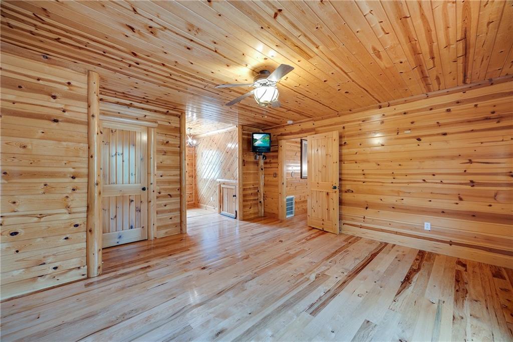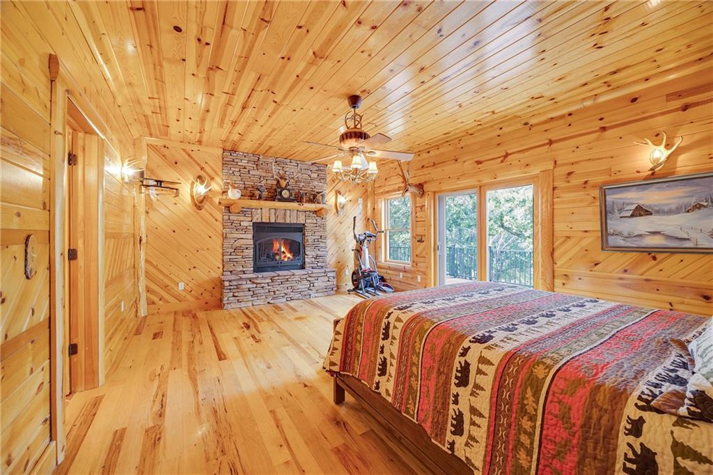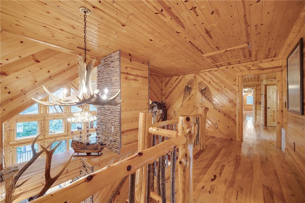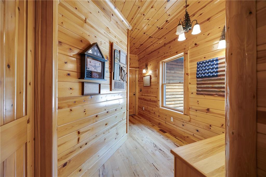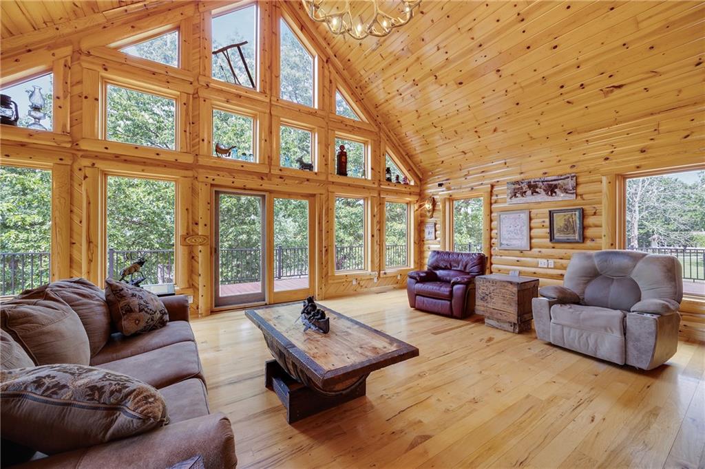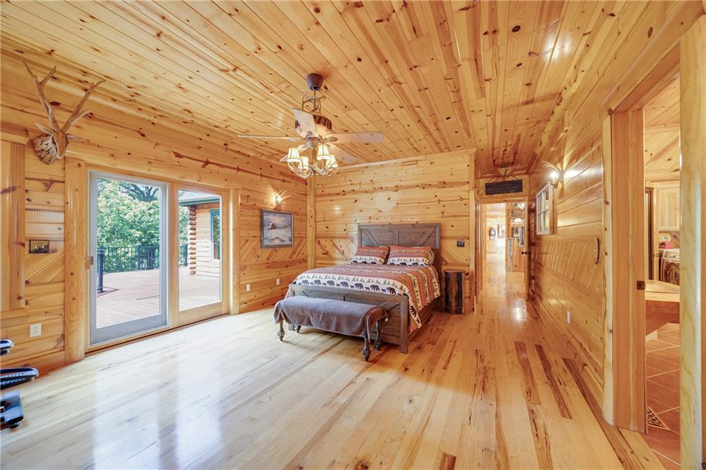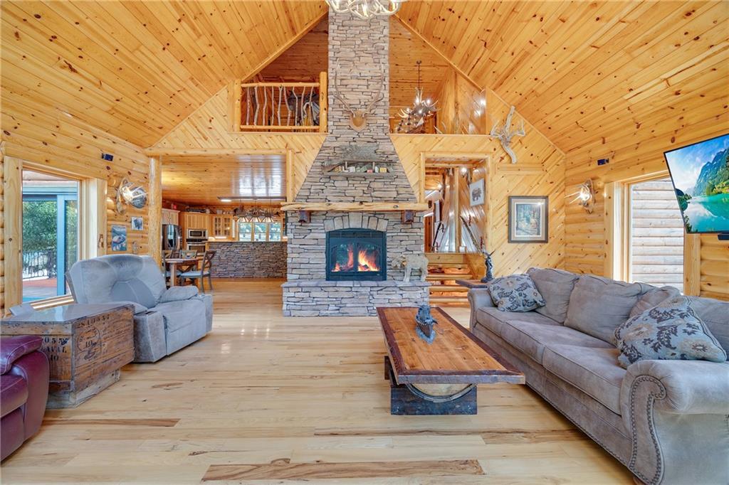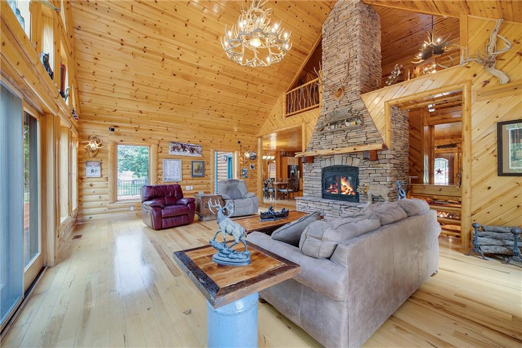 Grand Log Home Retreat with Lake Access on 4 Acres Welcome to your dream escape! This stunning 4-bedroom, 3.5-bath grand log home sits on 4 private acres and offers the perfect blend of rustic elegance and modern convenience. Nestled in nature and boasting lake access, this property is an outdoor enthusiast’s paradise. Inside, you’ll find soaring vaulted ceilings, rich wood beams, and an open-concept layout that’s perfect for entertaining or cozy nights in. The spacious primary suite offers a private retreat with serene views, while the walkout basement provides additional living space ideal for guests, recreation, or a home office. Bring all your toys—this home features four garage spaces, plenty of room for cars, boats, ATVs, or a workshop. Whether you're enjoying peaceful mornings on the deck, exploring the nearby lake, or hosting gatherings, this home is the ultimate lifestyle. Don't miss the walk-in custom gun safe. Just take a look at the size of this room(pic 73).