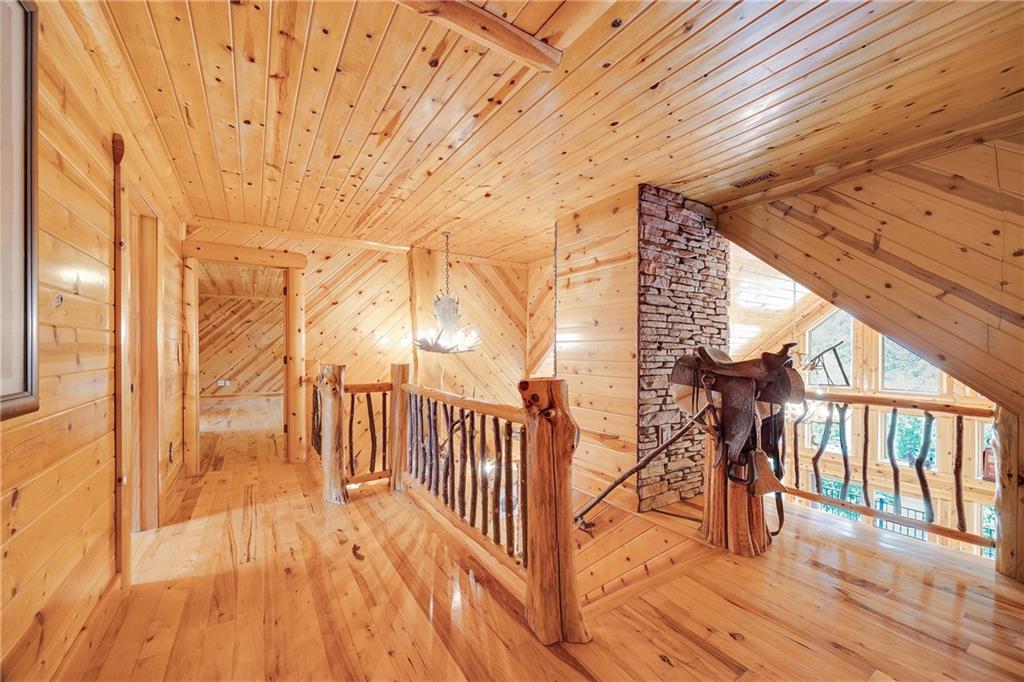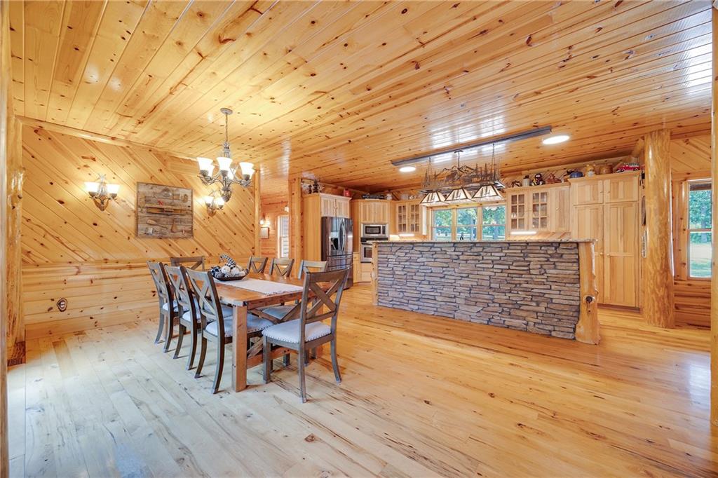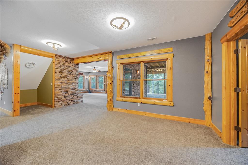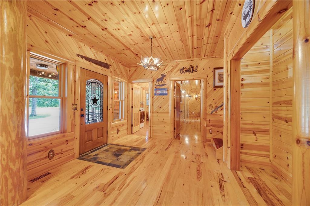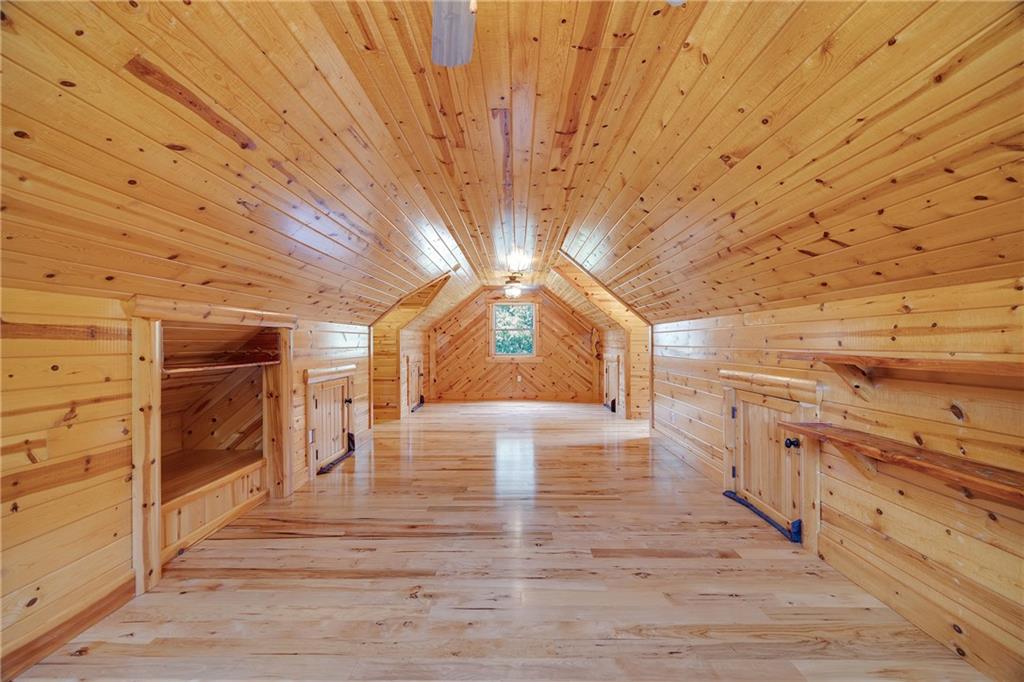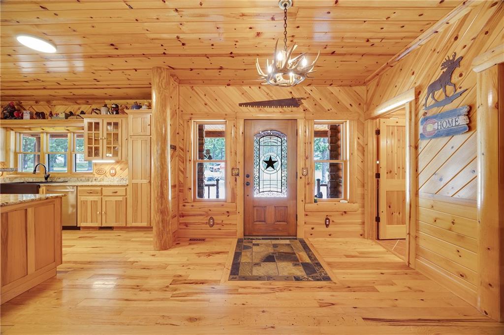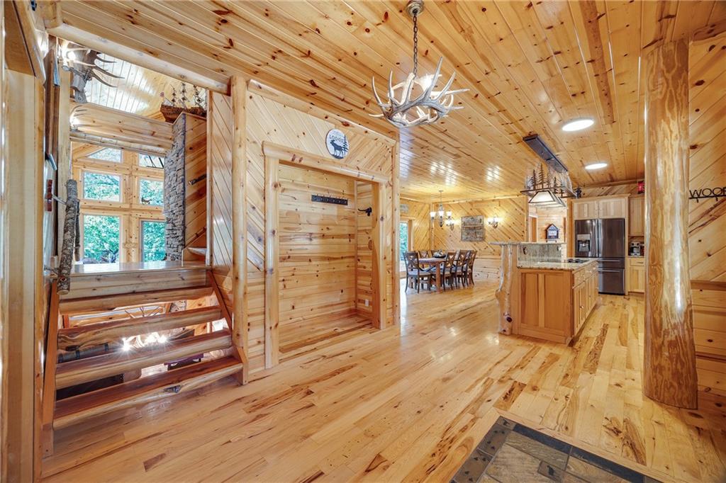 Grand Log Home Retreat with Lake Access on 4 Acres Welcome to your dream escape! This stunning 4-bedroom, 3.5-bath grand log home sits on 4 private acres and offers the perfect blend of rustic elegance and modern convenience. Nestled in nature and boasting lake access, this property is an outdoor enthusiast’s paradise. Inside, you’ll find soaring vaulted ceilings, rich wood beams, and an open-concept layout that’s perfect for entertaining or cozy nights in. The spacious primary suite offers a private retreat with serene views, while the walkout basement provides additional living space ideal for guests, recreation, or a home office. Bring all your toys—this home features four garage spaces, plenty of room for cars, boats, ATVs, or a workshop. Whether you're enjoying peaceful mornings on the deck, exploring the nearby lake, or hosting gatherings, this home is the ultimate lifestyle. Don't miss the walk-in custom gun safe. Just take a look at the size of this room(pic 73).