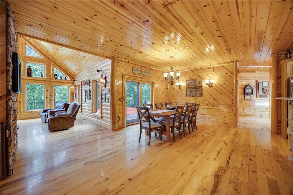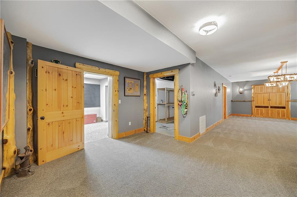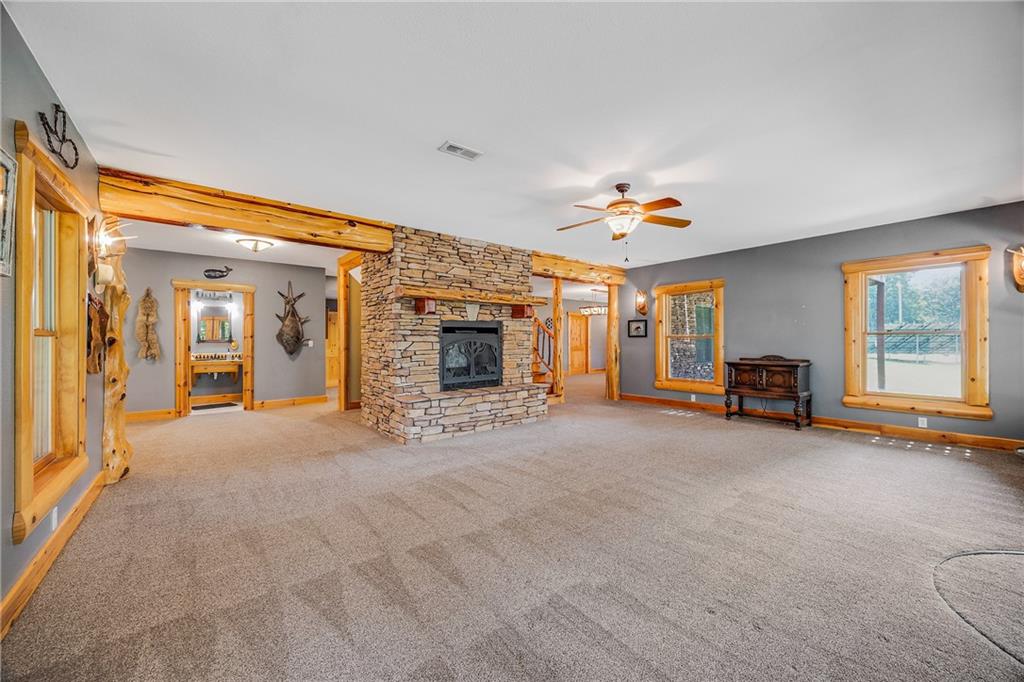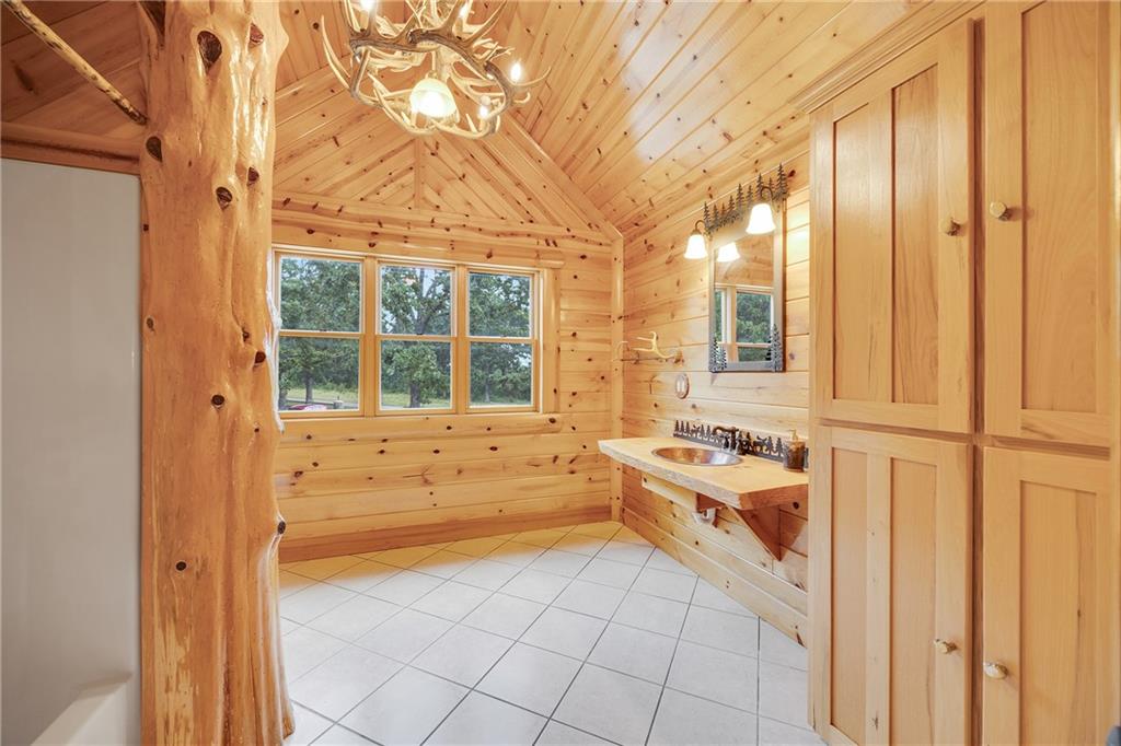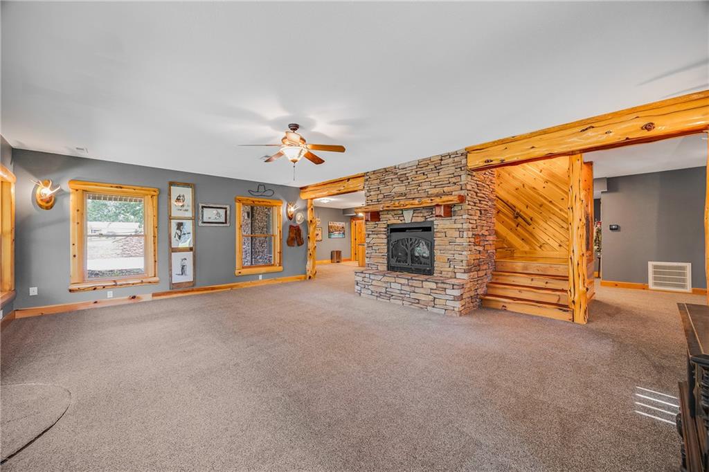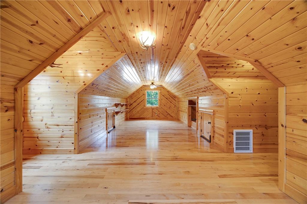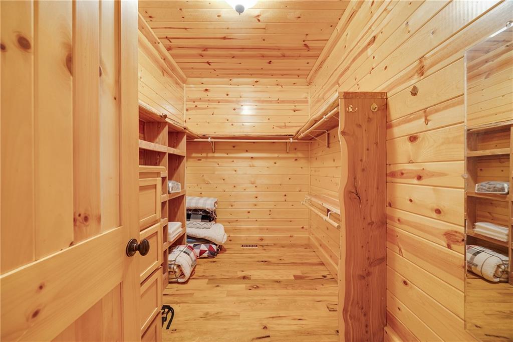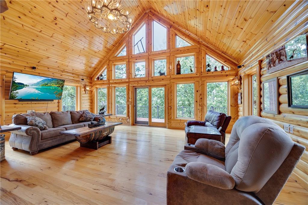 Grand Log Home Retreat with Lake Access on 4 Acres Welcome to your dream escape! This stunning 4-bedroom, 3.5-bath grand log home sits on 4 private acres and offers the perfect blend of rustic elegance and modern convenience. Nestled in nature and boasting lake access, this property is an outdoor enthusiast’s paradise. Inside, you’ll find soaring vaulted ceilings, rich wood beams, and an open-concept layout that’s perfect for entertaining or cozy nights in. The spacious primary suite offers a private retreat with serene views, while the walkout basement provides additional living space ideal for guests, recreation, or a home office. Bring all your toys—this home features four garage spaces, plenty of room for cars, boats, ATVs, or a workshop. Whether you're enjoying peaceful mornings on the deck, exploring the nearby lake, or hosting gatherings, this home is the ultimate lifestyle. Don't miss the walk-in custom gun safe. Just take a look at the size of this room(pic 73).