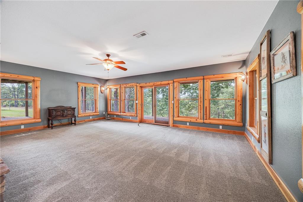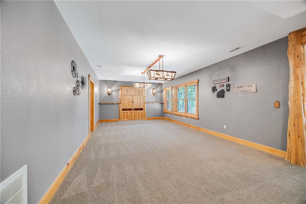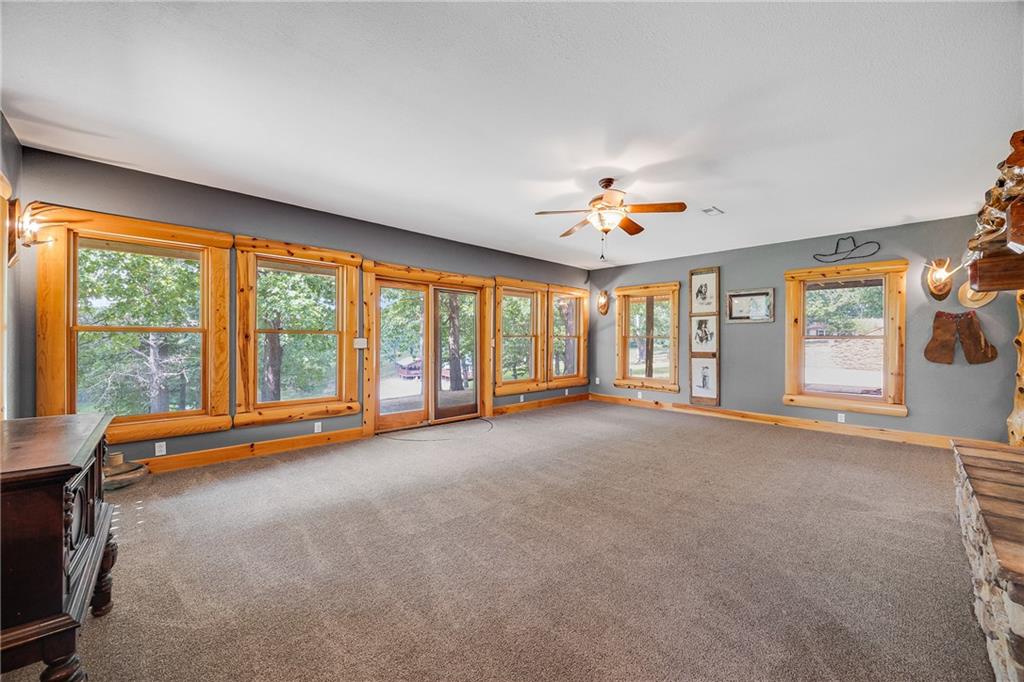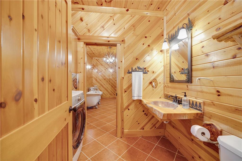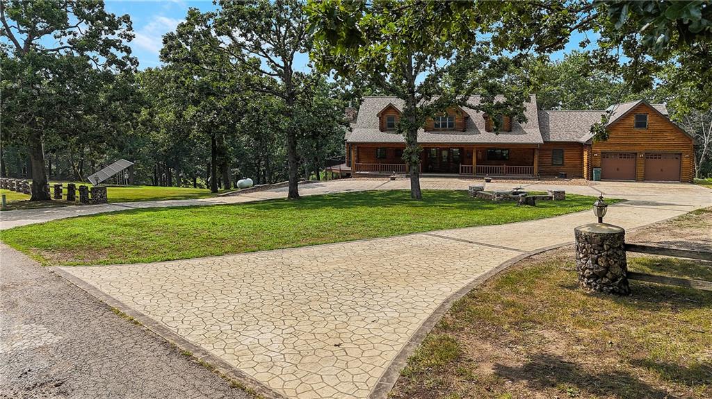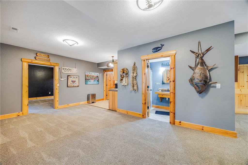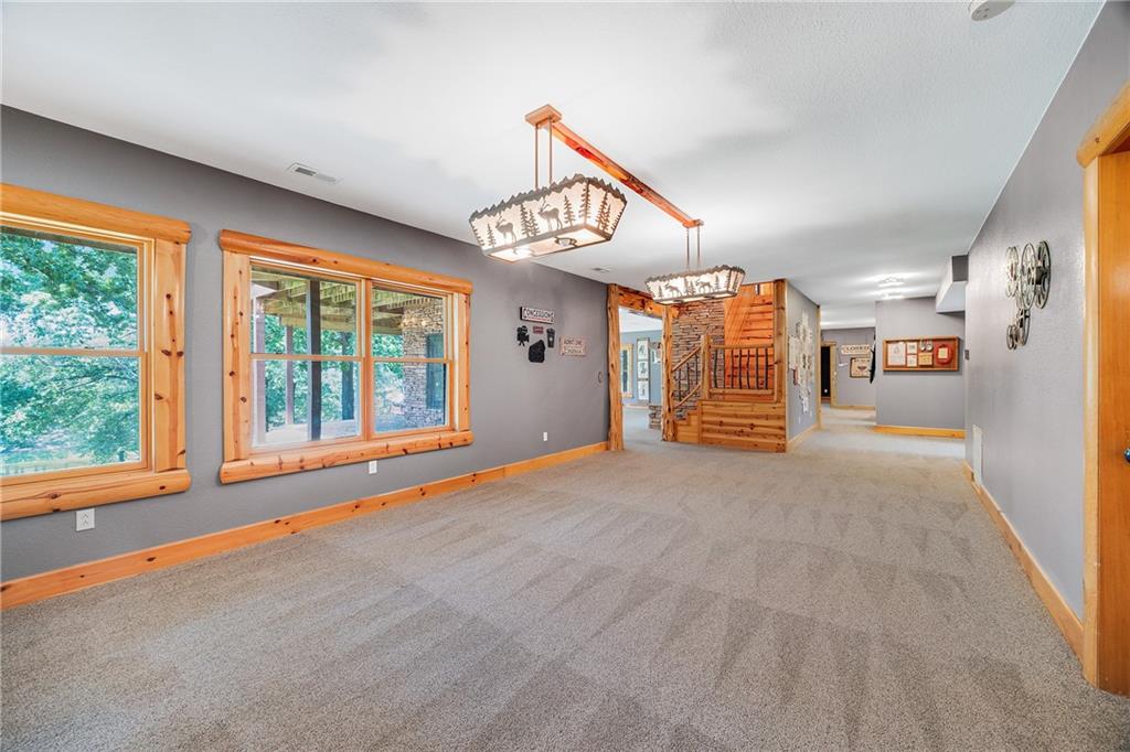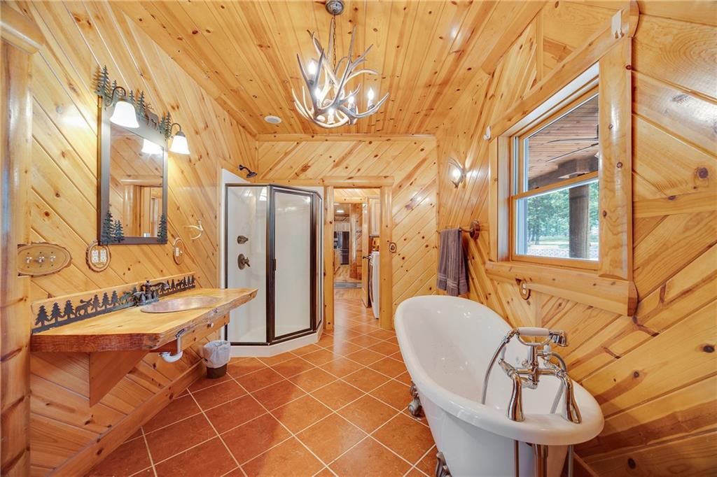 Grand Log Home Retreat with Lake Access on 4 Acres Welcome to your dream escape! This stunning 4-bedroom, 3.5-bath grand log home sits on 4 private acres and offers the perfect blend of rustic elegance and modern convenience. Nestled in nature and boasting lake access, this property is an outdoor enthusiast’s paradise. Inside, you’ll find soaring vaulted ceilings, rich wood beams, and an open-concept layout that’s perfect for entertaining or cozy nights in. The spacious primary suite offers a private retreat with serene views, while the walkout basement provides additional living space ideal for guests, recreation, or a home office. Bring all your toys—this home features four garage spaces, plenty of room for cars, boats, ATVs, or a workshop. Whether you're enjoying peaceful mornings on the deck, exploring the nearby lake, or hosting gatherings, this home is the ultimate lifestyle. Don't miss the walk-in custom gun safe. Just take a look at the size of this room(pic 73).