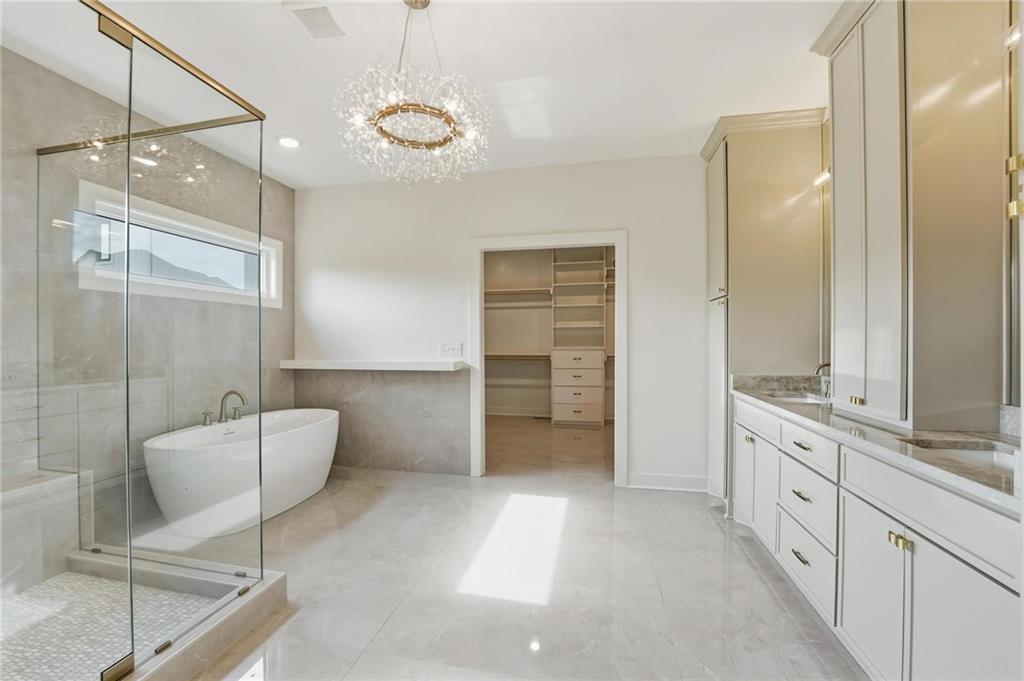 Luxurious Finishes at The National! Designer lighting, Pecan flooring, large format tiles, high-end countertops, stained cabinetry and beams, upgraded flooring, dual-zone heating and cooling, grill patio and covered patio, large lot at the end of a cul-de-sac. The kitchen is equipped with a 36" gas cooktop, a drawer microwave, and as a builder bonus, a full-sized fridge and freezer are included! The scullery provides additional prep space and storage, featuring a full-sized sink and open shelving. The main-level master suite offers a truly spa-like bathroom, complete with an oversized glass shower, a soaking tub, a vanity area, and stunning Taj Mahal Quartz countertops—typically found only in custom homes! The master closet features floor-to-ceiling built-ins and connects to the laundry room, which includes a sink and quartz countertop. The second-story loft adds extra living space with all bedrooms featuring walk-in closets and private access to ensuites—no more sharing! The main level office boasts elegant glass French doors. Enjoy a wet bar complete with a beverage fridge and floating shelves. The expansive lower level includes a suspended garage, all situated on a cul-de-sac lot with neighboring land owned by the HOA. Enjoy easy access to the subdivision pool and play area! Located in the Park Hill School District and part of a golf cart community, this home provides additional perks through social and golf club memberships to The National.