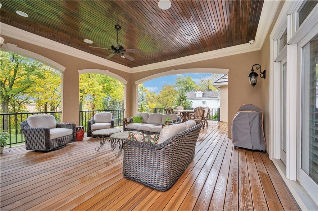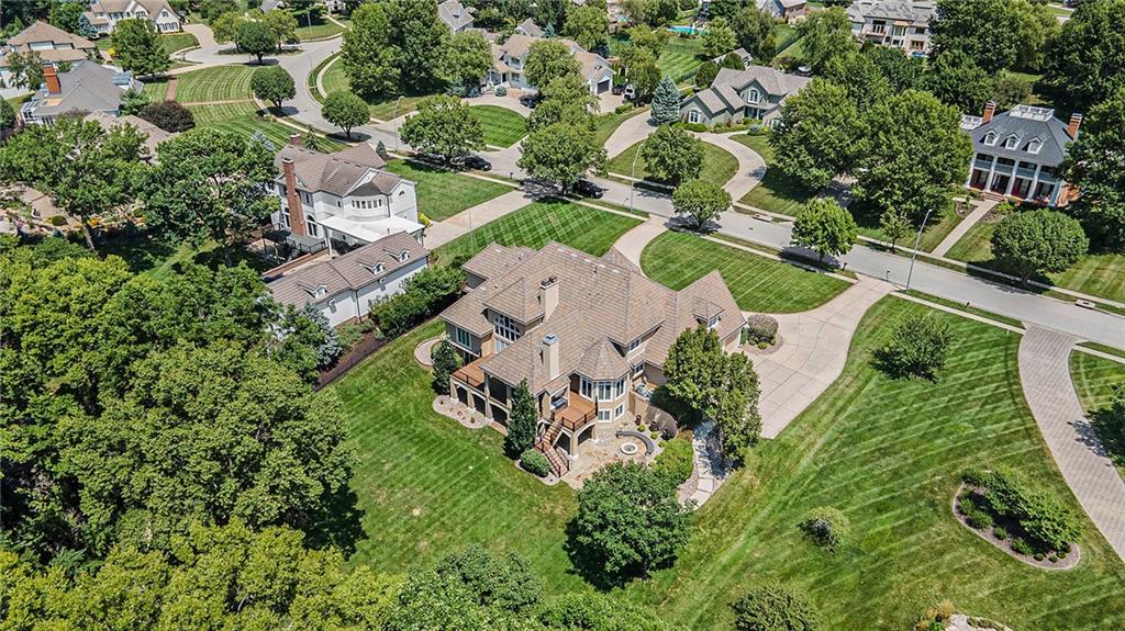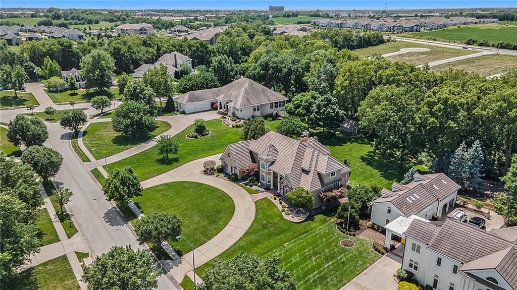Welcome to a one-of-a-kind builder-owned estate in the prestigious Thornhill neighborhood of Kansas City. This exceptional 8,000+ sq ft home offers luxury living at its finest, with unparalleled features and beautifully landscaped grounds that make it truly unique. This estate provides ample room for both relaxation and entertainment, featuring spacious living areas, two offices, and a gym. Gourmet kitchen & outdoor dining are the heart of the home complemented by a massive covered deck with a built-in grill – perfect for alfresco dining. Enjoy the outdoors year-round by the beautiful fire pit area near the huge covered patio. Adding to the home's grandeur is an enormous circle driveway and side entry garage. The property is highlighted by fresh paint, refinished hardwood flooring, and epoxy-coated garage floors, giving the home a polished look. Retreat to the spectacular primary bathroom, complete with a steam shower and luxurious finishes that create a spa-like experience. The home’s concrete roof ensures longevity, while the meticulously maintained landscaping enhances its curb appeal. This extraordinary estate in Thornhill is a rare find that offers both luxury and comfort. Don’t miss the opportunity to make this unique home yours! In addition, the location to local restaurants and the airport are icing on the cake. If you enjoy golfing than drive your golf cart over to Tiffany Greens for a round - please inquire for memberships at Tiffany Greens.