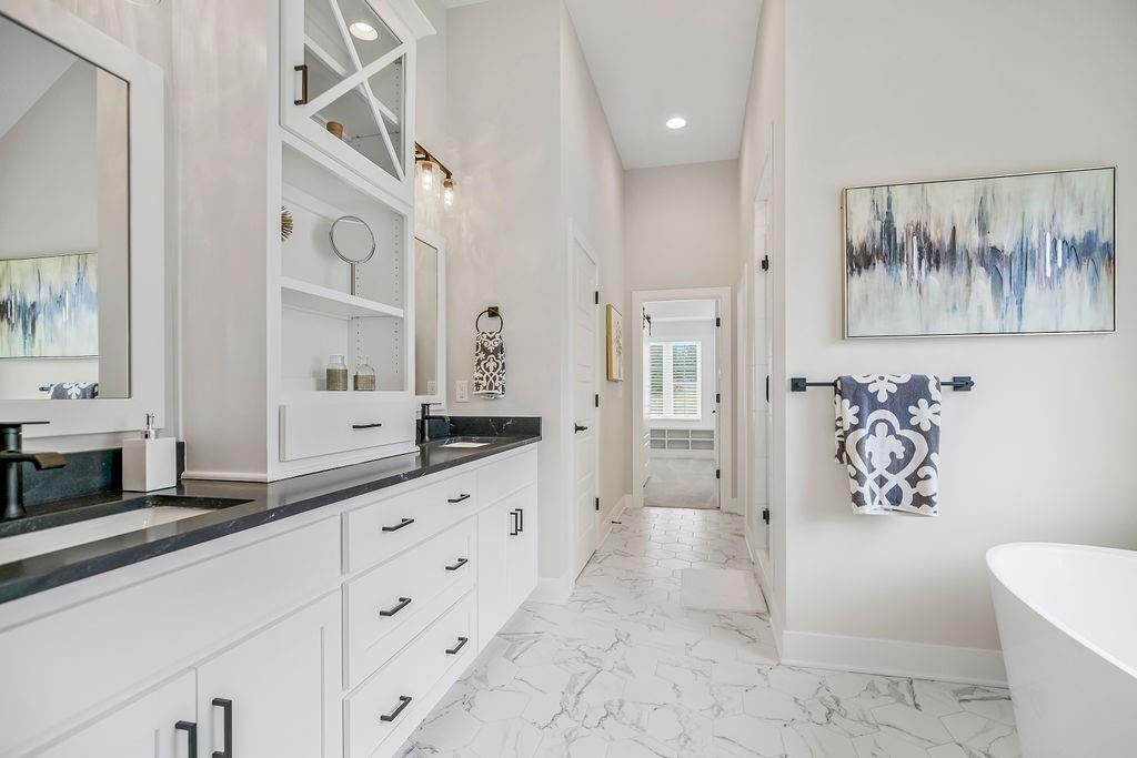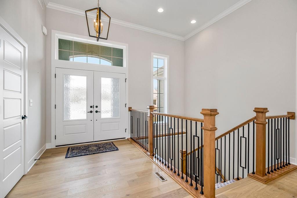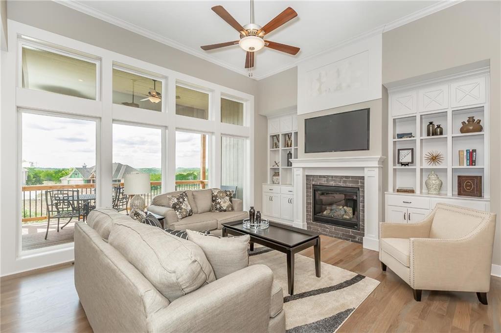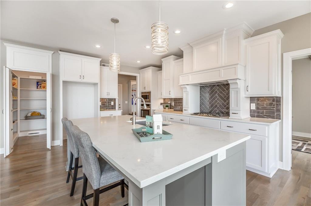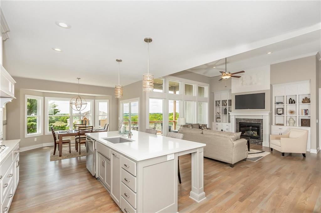 Lot 142 "The Morgan" by New Mark Homes. Live in a Golf Course Community on a Huge walkout lot backing to tree line on .68 acres - in Falcon Lakes! A rare find!! Can be finished in the next 30 Days! FINISHED PHOTOS OF A PRIOR MODEL. FINISHES AND UPGRADES WILL VARY. Beautiful Reverse plan has an open entry to the Large Great Room with fireplace, full windows looking out to the trees and large yard. Opens to the Spacious Kitchen with Island, big walk in pantry and Breakfast Area walks out to the big center covered deck. Main Floor Primary Bedroom, walk in closet and Primary Bath suite has separate showe & tub. Main floor laundry room just off the Primary Bedroom walk in closet. Second main floor Bedroom and Bath. Boot bench/drop zone just off the 3 Car Garage/Kitchen. Huge walkout lower level Family Room walkouts to the patio and includes bar area. Lower level Bedrooms 3 & 4 with third full Bathroom. Just 10 minutes from the Legends Dining, Shopping and Entertainment area and 30 minutes to the airport. Acclaimed Basehor-Linwood schools.
