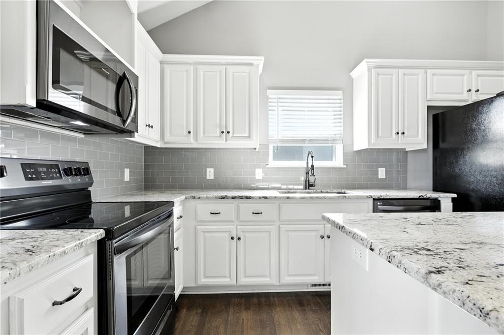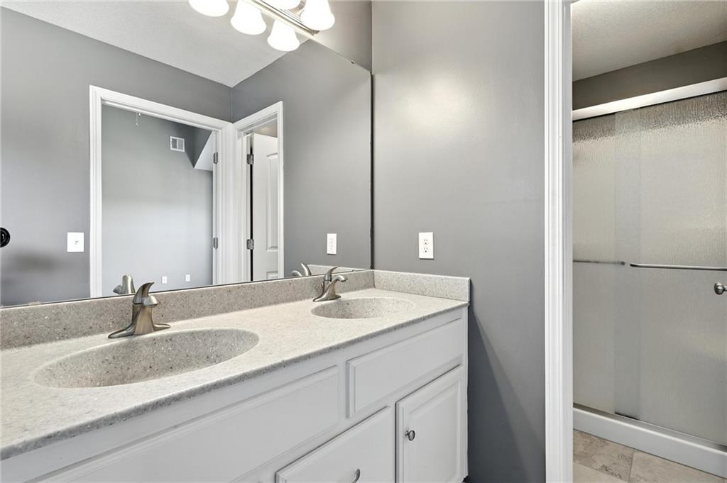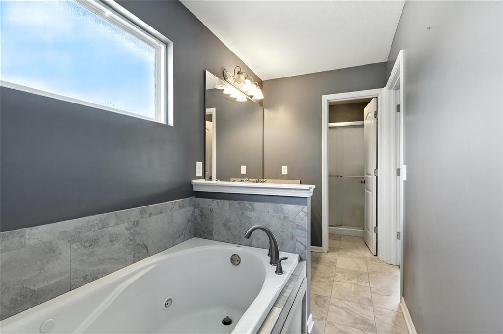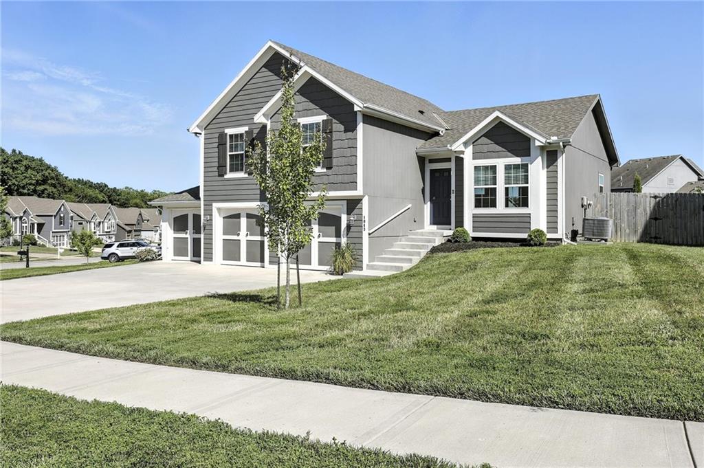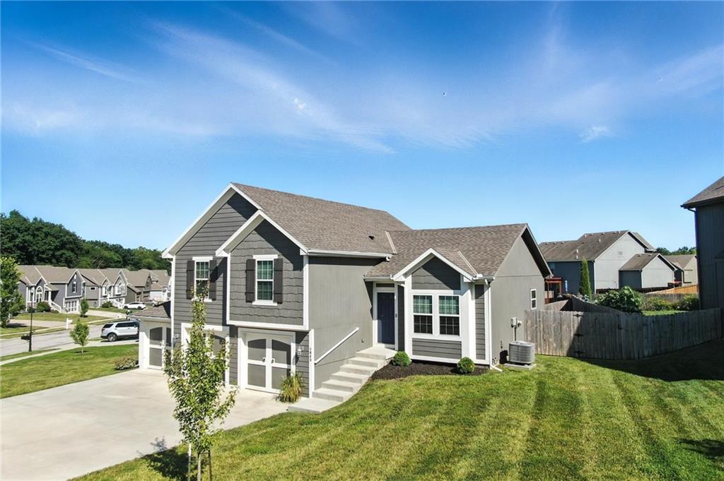 THIS INCREDIBLE HOME IS MOVE-IN READY-Atrium Split-Level home that you can see the whole house from the main level. From the Kitchen you can look upstairs and see the bedrooms and then look down into the lower-level family room. This is ideal for entertaining or hanging out with your family. The main home features 3 bedrooms on upper level and 2.5 bathrooms. The Kitchen with a large Granite Island, Custom White Cabinetry, a nice Pantry, and a Brand-New High-end faucet. Fresh New Interior Paint throughout the home adds a bright, updated feel, while stunning hardwood floors flow seamlessly through the main living areas. The inviting family room features a cozy fireplace, ideal for relaxing evenings. Enjoy a spacious master suite featuring abundant natural light, a ceiling fan, and a luxurious ensuite complete with a relaxing jacuzzi tub, double vanity, separate shower, and a generous walk-in closet. Bathrooms and laundry room boast upgraded tile flooring, combining style and functionality. There is Additional storage space available in the sub-basement, or you could finish it for a fourth bedroom. Walk out to the covered deck with additional Privacy Shade that pulls down and fenced backyard. Home Sits on a Large Corner Lot/ Cul-de-sac with lots of front yard space. ******EXTRA FEATURE***** you won't want to miss is the SPACIOUS 3-BAY GARAGE is Ideal for a Car Workshop or Mancave. This unique setup with three Single Garage Doors offers greater flexibility and usable space than a traditional garage. Designed to stay cool and shaded throughout the day, the garage never receives direct sunlight- making it an Excellent environment for a Car Shop, Hobby space, or mancave. The third bay can accommodate a car lift, offering even more possibilities for customization. This neighborhood is great for walking your dog or playing outside. The Jesse James Park is close by for all your entertainment and adventures.