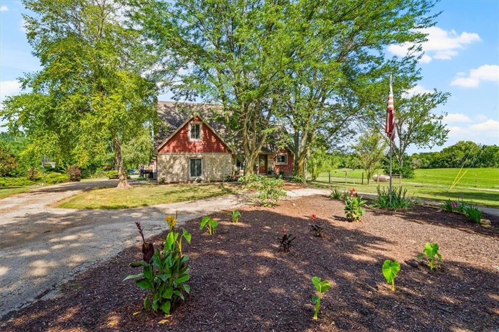 It doesn't get much better than this...a picturesque 13-acre property with a pond, barn, plenty of pasture, and approximately 4.5 wooded acres all right outside your beautiful home! A circular drive leads you to your front door. Enter into the spacious foyer, which leads into the inviting living area with soaring vaulted ceilings and a lovely see-through brick fireplace (other side is primary bedroom). The kitchen features cherry-stained maple cabinets, granite countertops, stainless appliances (including a double-oven and 5-burner gas cooktop!), and thoughtful features like multiple appliance caddies, built-in countertop cutting board, pantry, and built-in spice rack. The dining area overlooks the wraparound deck and allows you to enjoy the view of your property. The main floor primary bedroom includes the fireplace and private bath with a separate jetted tub and shower, dual vanities, and ample closet space. A stunning curved staircase leads upstairs where you'll find a loft area, the 3 additional bedrooms and another full bathroom. Check out the large finished rec space in the basement with built-ins, ideal for entertaining! The barn features a concrete floor, electricity, and water through an exterior faucet. There is also water to the garden plots between the house and barn. Practice Range set up on the backside of the barn. Lagoon was installed in 2021. A portion of the property (field to the south of the house) is leased to neighbors for their horses. The electric fence also belongs to the neighbor. The neighbor would like to continue leasing the land for their horses if the buyer is amicable.