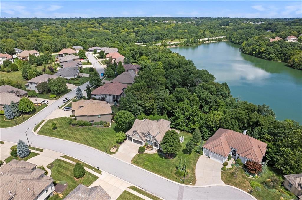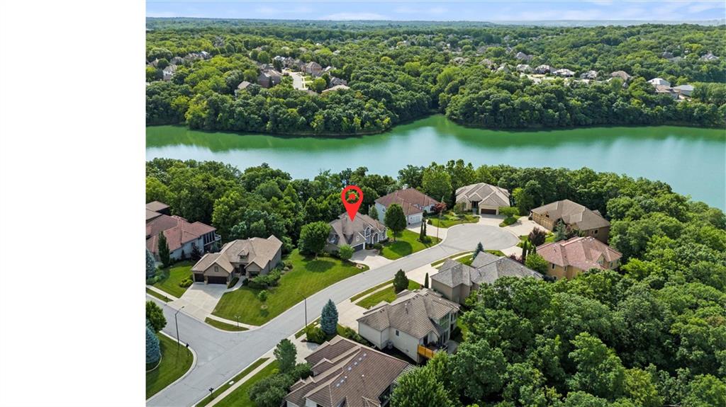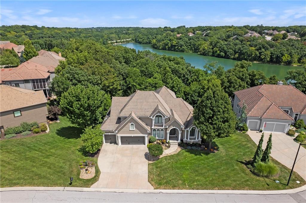 EXQUISITE, LAKEFRONT, Cul-de-Sac Lot,Custom Estate in Riss Lake Reserve! Beautiful landscaping, inviting, tranquil waterfall feature... Open the front door and let the WOW begin! Soaring Vaulted Entry Ceilings, Picture-esc windows capturing the BEST seasonal Lake and Treed Views from every room! Stunning hardwood floors, trendy & fresh interior paint through out! NEWLY remodeled Gourmet Kitchen! Crisp, Painted Cabinets, Hardware, Exotic Granite Counters and Island, NEW SS Appliances, Viking Gas Range, Viking Convection Microwave, GE Profile Double Oven, Bosch Dishwasher, Refrigerator, & Walk-in Pantry! Comfy & Cozy hearth room w/ gas fireplace, main floor office, & eat-in kitchen double doors open to composite deck. Enjoy quiet shaded evenings, grill out, and relax! Luxurious Primary Suite featuring see-through fire place, NEWLY REMODELED BATH, Heated, Imported Italian Porcelain Floors, Double Vanity, soft close drawers, granite counters, Walk-in dual head shower, Jetted Tub, & CUSTOM DESIGNER CLOSET! Upper level features a huge loft with the outstanding LAKE VIEWS! 2nd Bdrm Suite, NEW carpet, walk-in closet & 2nd Washer & Dryer! Lower Levels is an ENTERTAINERS DREAM! Old World Bar featuring a secured, walk-in, 750 bottle Chilled Wine Cellar, HUGE Wetbar with custom cabinetry, Full Refrigerator, dishwasher, oven, microwave, and Second Deck! Additional office/study with incredible nature views! Workout room (or 5th bedroom), walk-in closet, and spa like full bath! METICULOUSLY MAINTAINED TO PERFECTION! Sellers have done it all! EV Charging Station in single bay garage, NEW AC Units, Furnaces, & Tankless Hot Water Heater! Hardwired security & Control4 Entertainment System! Maintenance Provided! Enjoy all of Riss Lakes Amenities! 3 swimming pools, Trails, Recreational Lake, Tennis Courts, Playground, and great access to Parkville’s finest local shops, restaurants, parks, walking/biking trails… This is luxury lifestyle living at it’s finest! LOVE WHERE YOU LIVE!