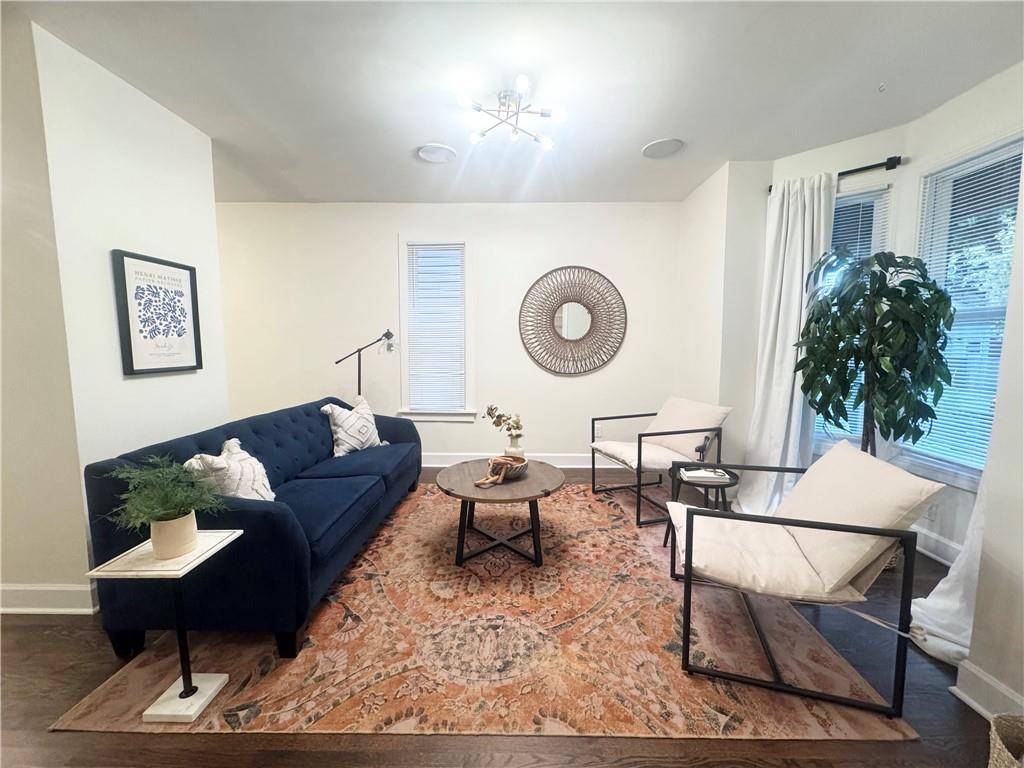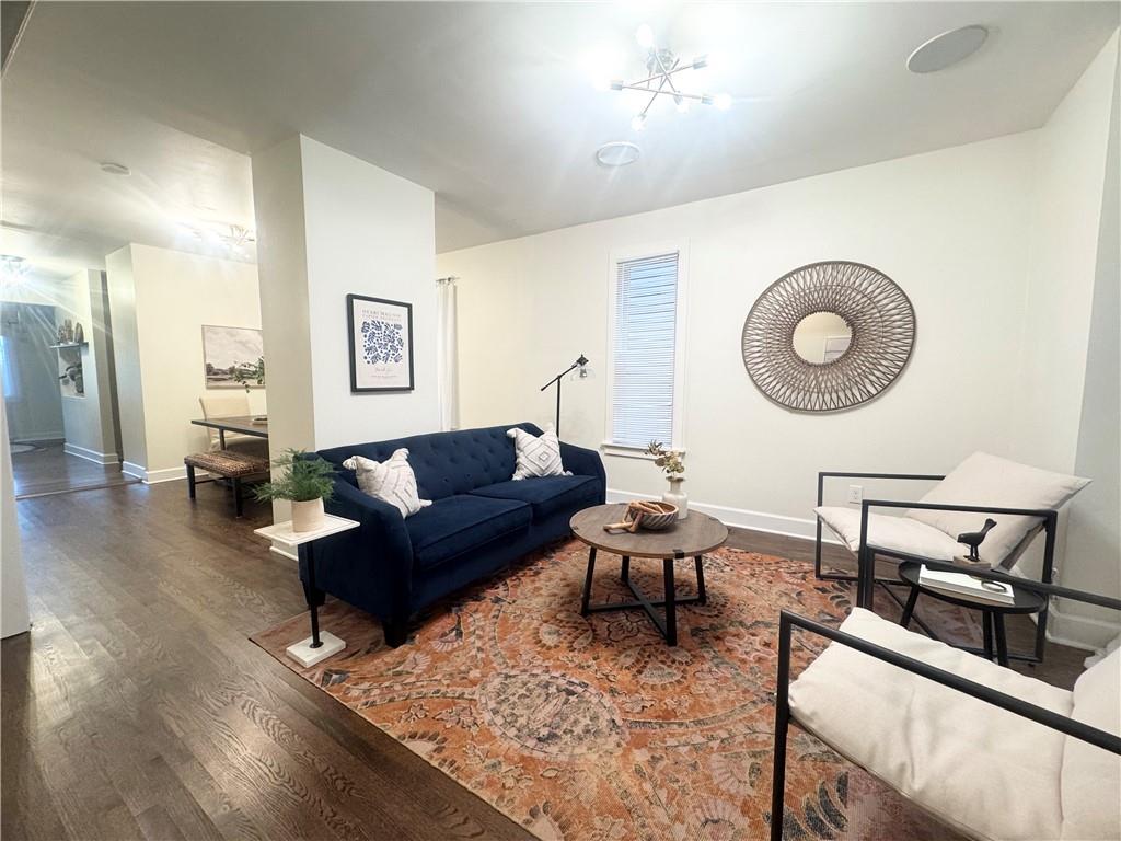 Experience the perfect blend of timeless character and modern sophistication in this beautifully restored two-story home, nestled in one of Kansas City’s most vibrant and historic neighborhoods. Step inside to an open, airy floor plan where the living, dining, and kitchen areas flow seamlessly together—highlighted by soaring ceilings and abundant natural light that fills every space with warmth and charm. At the heart of the home is a hand-crafted stair rail, over a century old, preserving the artistry and history that make this property truly one of a kind. The second level features three spacious bedrooms and two full bathrooms—a rare find for this architectural style. From your windows, take in breathtaking views of Downtown Kansas City and the Kauffman Center for the Performing Arts, a daily reminder of the city’s creative energy. Recent updates include newer cedar lap siding, energy-efficient windows, updated insulation, a tankless water heater, and a new deck and fence. Additional enhancements such as a newer roof, furnace/AC, and tasteful exterior renovations ensure modern comfort while maintaining the home’s historic integrity. Perfectly located just minutes from Westside’s beloved shops, cafes, and restaurants, this home offers a lifestyle rich in history, design, and convenience—an exceptional opportunity in one of Kansas City’s most sought-after neighborhoods.