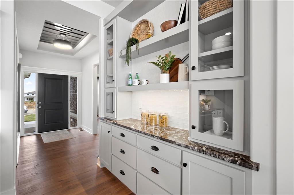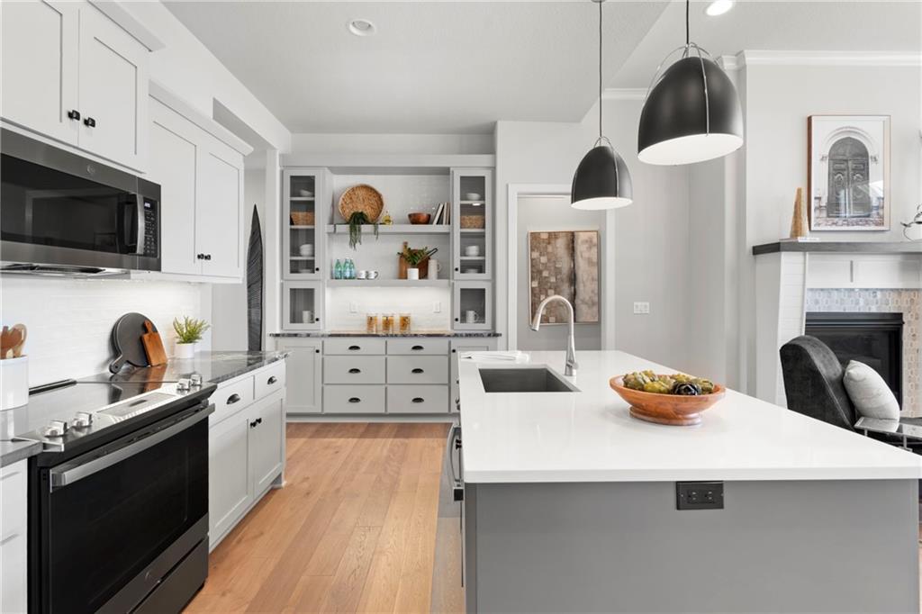 MODEL HOME NOT FOR SALE. The "Sonoma" Reverse by SAB Homes is here! This beautiful Villa has everything you need for your maintenance provided living. As you enter the foyer you are greeted with custom trim at ceiling and wainscotting. Stunning hardwoods that lead you into the Great Room with fireplace. The kitchen island faces the back windows with sink in island for convenience with all your entertaining. Pantry and great counterspace for all your needs. Dining room off the great room with access to covered patio. The Primary En-Suite is on the opposite side of the main level with windows to view back yard, bathroom with double vanity & shower - leads into the walk-in closet. Bedroom 2 and Bathroom 2 is off the entry. Mud hall and laundry is in the hallway behind the kitchen as you walk in from the garage. The lower level has bedroom #3 with walk-in closet with bathroom #3, Rec Room and wet bar next to the walkout-walkup feature that allow perfect access to back yard. Option for a 4th bedroom with optional walk-in closet. Excellent storage space as well. All in the coveted Heritage Ranch, A Lambie-Rieke Community, with Amenities Galore such as state-of-the-art pool, clubhouse, trails, pickleball. play area, half-court basketball, ponds and so much more coming soon! This community provides a wonderful lifestyle and right next to the 1,238 Acre Heritage Park with Dog Park, Sports Parks, Golf, Lake, Trails and so much more! Contact Onsite Agents for Estimated Completion of homes on site, and design selections. Sales Office OPEN 7 Days/Week, located at LOT 65. Renderings &/or images may show features and sq ft that are subject to change. Home is under construction. Welcome Home to Heritage Ranch - one of the last NEW Home Communities in Johnson County! LOT 79. Home is Under Construction with an Estimated Completion NOV 2025. Taxes and sizes are estimated.
