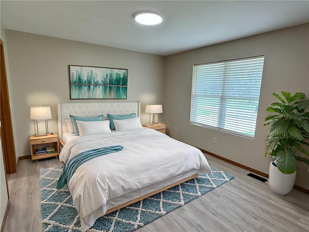 Welcome home to this beautifully updated 3-bedroom, 2 full bath ranch offering low-maintenance living in a prime location! Step inside to discover brand new luxury vinyl plank flooring throughout, fresh paint, and stylishly remodeled bathrooms featuring new tub/showers and toilets. Enjoy the convenience of one-level living with a spacious, open layout that's perfect for everyday living and entertaining. The large backyard provides ample space for play, gardening, or relaxing in your private outdoor oasis. Additional features include off-street parking and a location that can't be beat — just a short walk to the elementary school, community pool, and baseball diamonds. Whether you're starting out or downsizing, this home combines comfort, convenience, and value. Don't miss your chance to own this turnkey gem! Buyer to verify all information including property tax.