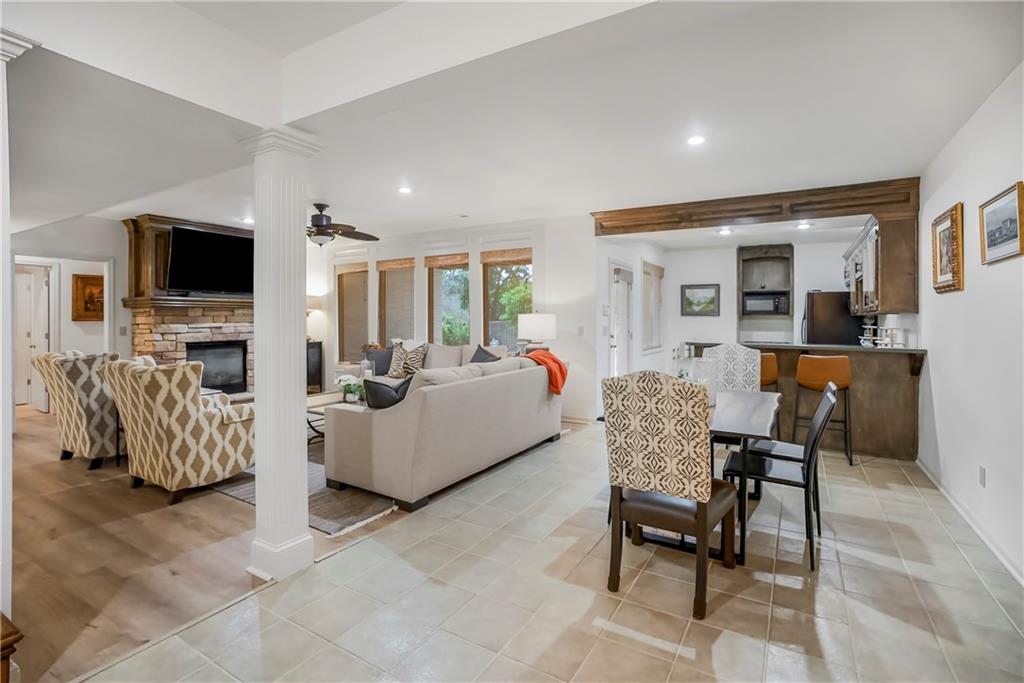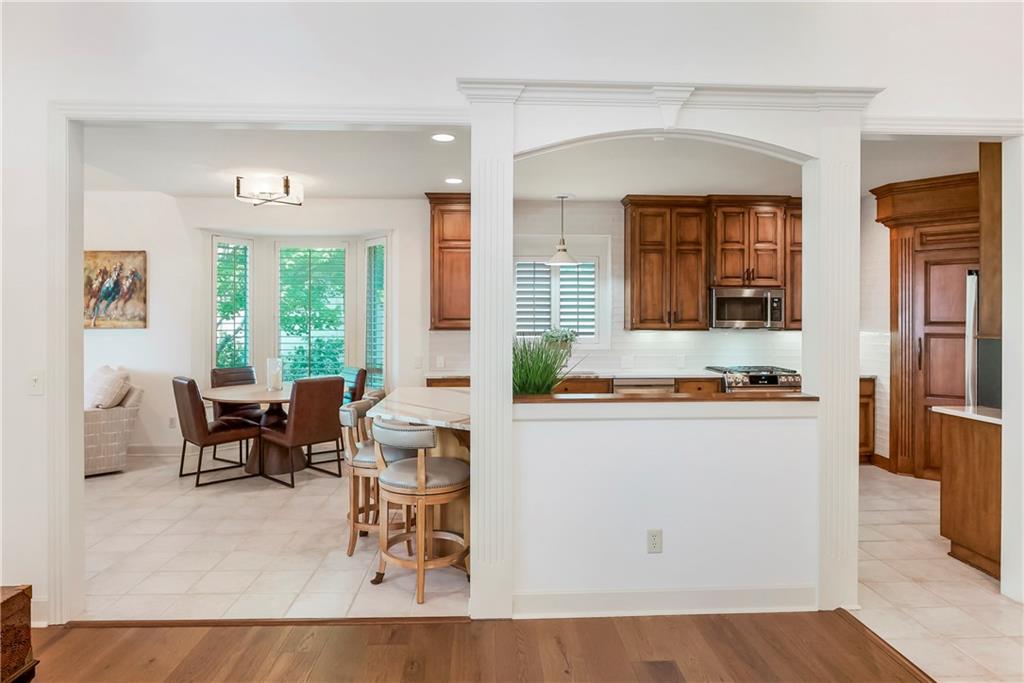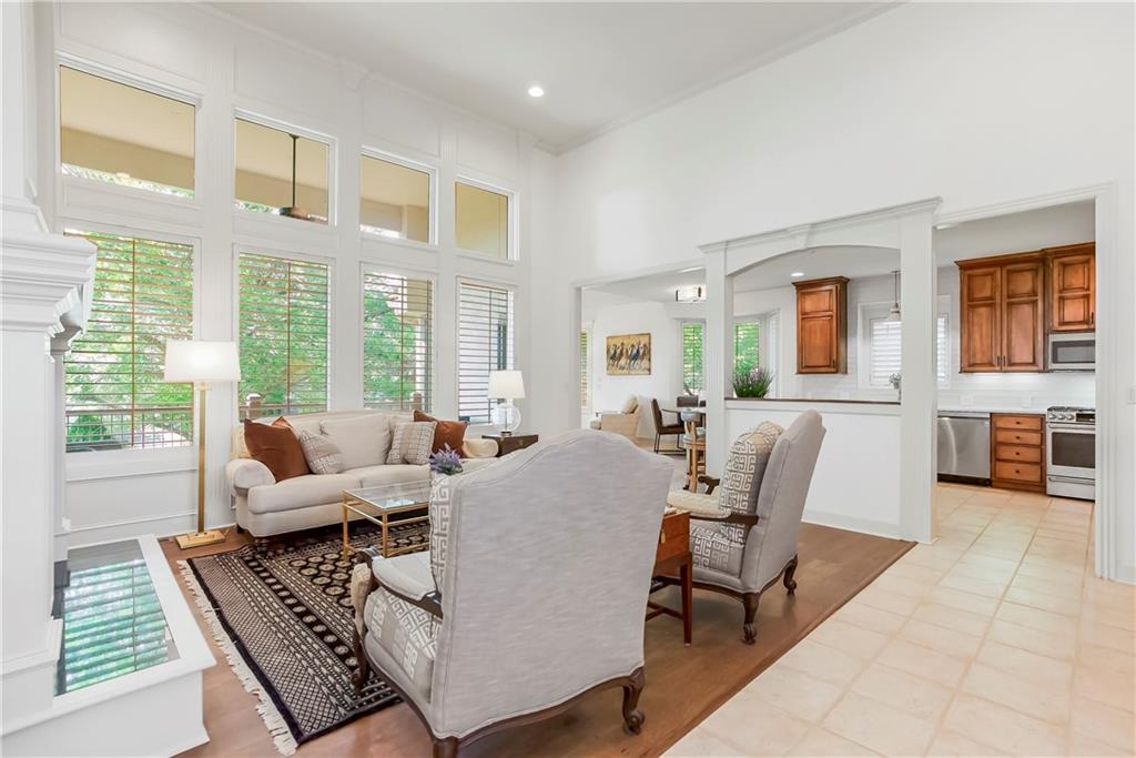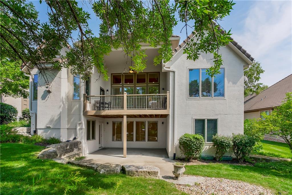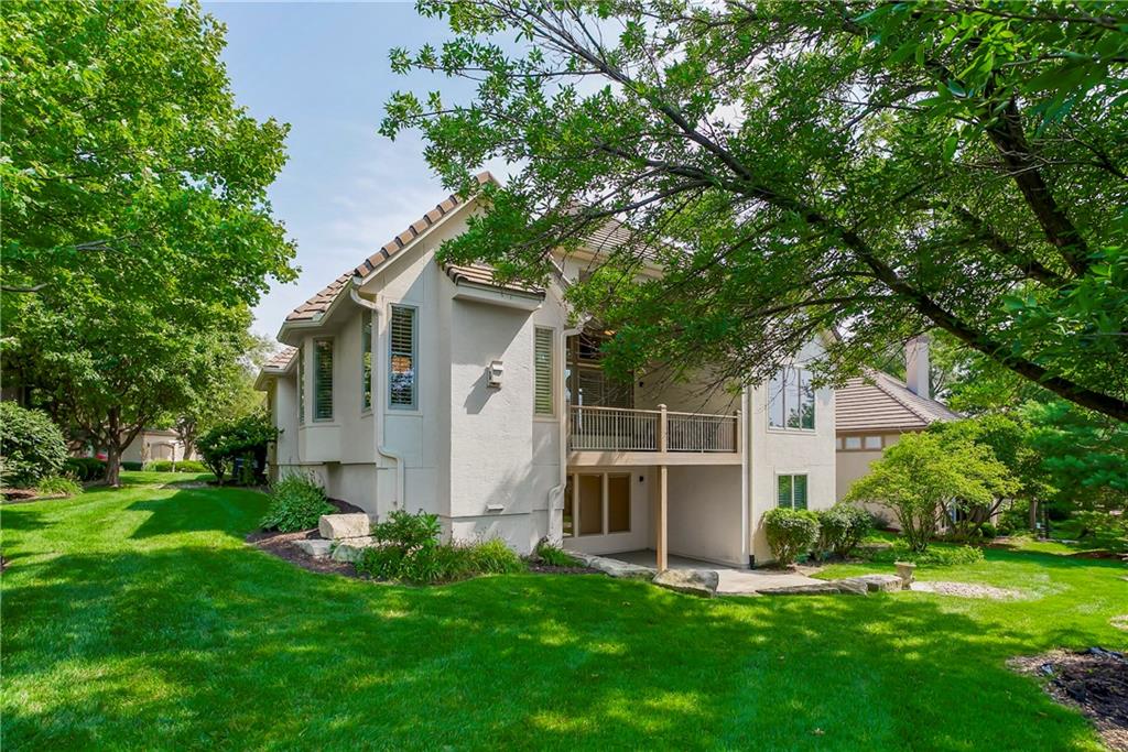 Maintenance-Provided VILLA, tucked in the highly sought-after Woods Villas community = the best home in the best location! Built by award-winning BL Rieke Custom Homes, it features fresh interior paint, updated lighting, newer wood floors on the main level, newer carpet in the primary suite, and newer flooring in the lower level. The open kitchen includes endless quartz countertops, GE Café Series appliances (gas range too), walk-in pantry, and it all opens to the hearth room and the breakfast nook (with a bay window). Other standout features you'll appreciate as you enter are the breathtaking soaring ceilings (12’ at the entry and dining room, and up to 14’ in the living room), plantation shutters, and a nice COVERED deck just off the hearth kitchen. The primary suite includes a spa-like bath with custom glass shower, and a walk-in closet with bonus pull-down storage (ideal for your off-season selections). A vaulted 2nd bedroom on the main level doubles as a perfect office or den. The bright walkout lower level features tall ceilings, a family room with a full wall of windows and a stone fireplace, recreation area, and full wet bar/bonus kitchen—plus a large covered walkout patio. Two additional guest bedrooms each have walk-in closets and direct bath access. A large unfinished area is great for hobbies, workout/gym space, or storage. Surrounded by mature trees and lush landscaping, "the Woods" has its own private walking trail and it feels like a wooded retreat—yet you’re less than a mile from one of Kansas City's best destination shopping and dining districts at Leawood’s Town Center Plaza, Town Center Crossing, and Park Place (Apple Store, Restoration Hardware, Trader Joe's, Macy's, Bristol Seafood Grill, North Italia & more). Tomahawk Trail Park is also nearby with trails and a new playground, connecting to the 10-mile Tomahawk Creek Trail. Incredibly easy access to I-435. This isn’t just a fabulous VILLA—it’s also a great Leawood ‘location-location-location”!