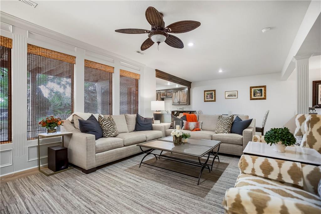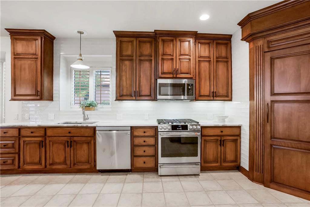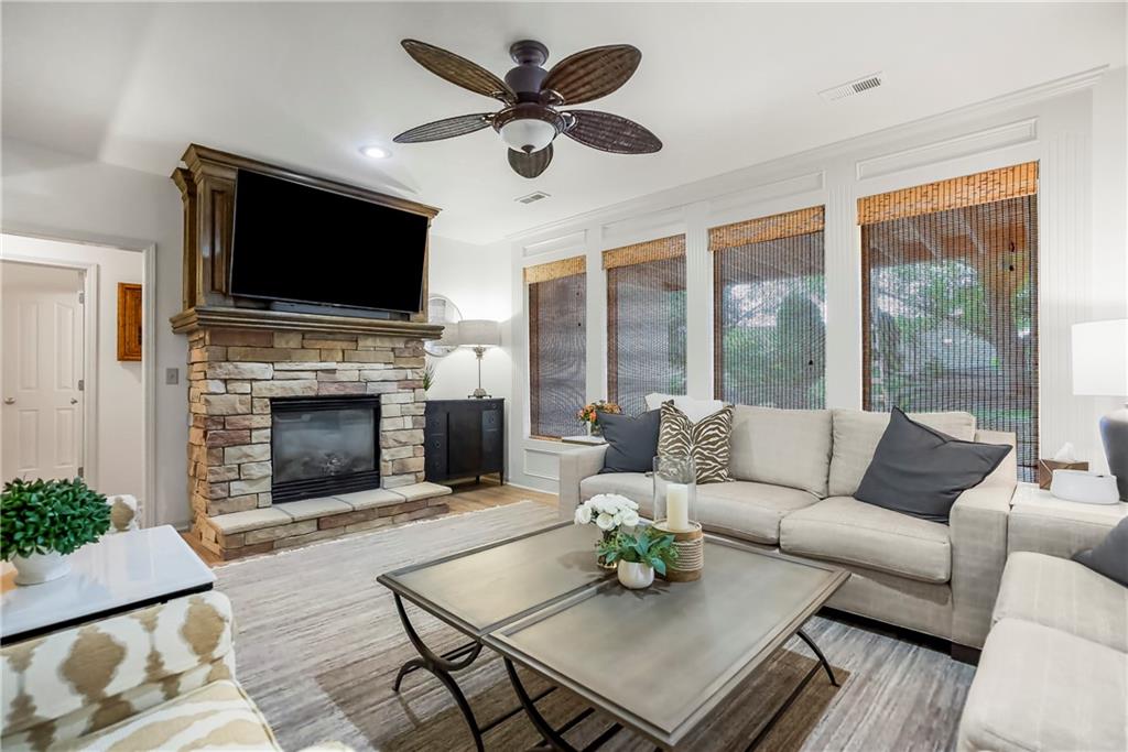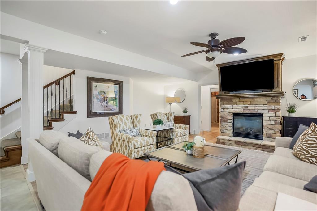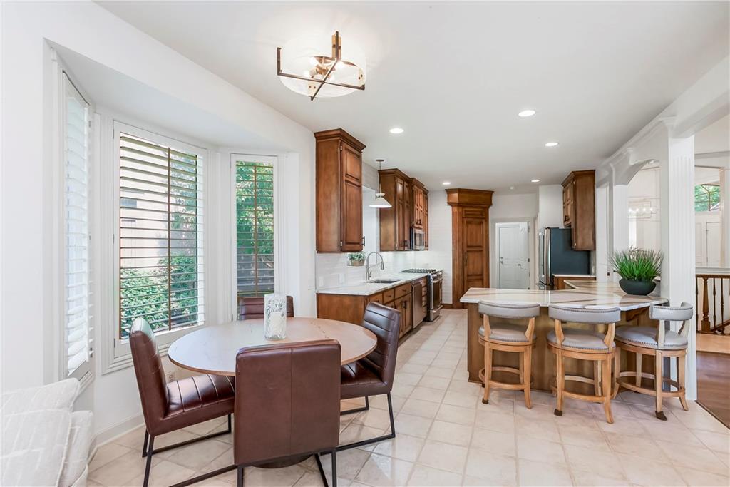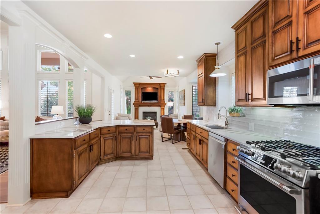 Maintenance-Provided VILLA, tucked in the highly sought-after Woods Villas community = the best home in the best location! Built by award-winning BL Rieke Custom Homes, it features fresh interior paint, updated lighting, newer wood floors on the main level, newer carpet in the primary suite, and newer flooring in the lower level. The open kitchen includes endless quartz countertops, GE Café Series appliances (gas range too), walk-in pantry, and it all opens to the hearth room and the breakfast nook (with a bay window). Other standout features you'll appreciate as you enter are the breathtaking soaring ceilings (12’ at the entry and dining room, and up to 14’ in the living room), plantation shutters, and a nice COVERED deck just off the hearth kitchen. The primary suite includes a spa-like bath with custom glass shower, and a walk-in closet with bonus pull-down storage (ideal for your off-season selections). A vaulted 2nd bedroom on the main level doubles as a perfect office or den. The bright walkout lower level features tall ceilings, a family room with a full wall of windows and a stone fireplace, recreation area, and full wet bar/bonus kitchen—plus a large covered walkout patio. Two additional guest bedrooms each have walk-in closets and direct bath access. A large unfinished area is great for hobbies, workout/gym space, or storage. Surrounded by mature trees and lush landscaping, "the Woods" has its own private walking trail and it feels like a wooded retreat—yet you’re less than a mile from one of Kansas City's best destination shopping and dining districts at Leawood’s Town Center Plaza, Town Center Crossing, and Park Place (Apple Store, Restoration Hardware, Trader Joe's, Macy's, Bristol Seafood Grill, North Italia & more). Tomahawk Trail Park is also nearby with trails and a new playground, connecting to the 10-mile Tomahawk Creek Trail. Incredibly easy access to I-435. This isn’t just a fabulous VILLA—it’s also a great Leawood ‘location-location-location”!