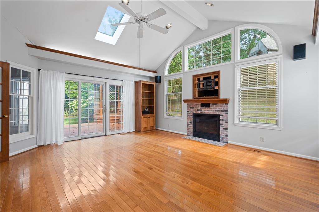 Welcome to this beautifully home in the highly sought-after Leawood South community! Featuring 4 bedrooms, 2.5 baths, and two spacious living areas with vaulted ceilings, built-ins, and two fireplaces, this home is designed for both comfort and style. The primary suite offers a spa-like retreat with wood floors, an oversized walk-in closet with custom built-ins, a double vanity, whirlpool tub, and separate shower. Step outside to your own private paradise—an inviting deck with gazebo perfect for entertaining or relaxing, overlooking a spacious backyard. A large unfinished basement provides endless potential, ready for your personal touch. Location is everything! With the golf course just steps from your door, plus shopping, dining, and entertainment only minutes away, you’ll love the convenience and lifestyle this home provides. Paired with award-winning schools, this property is truly a must-see.