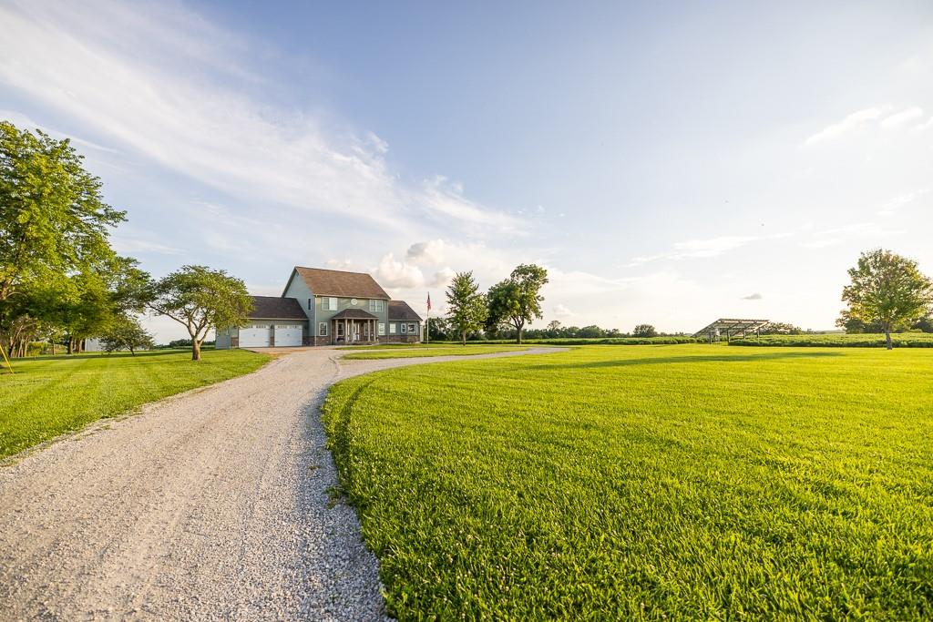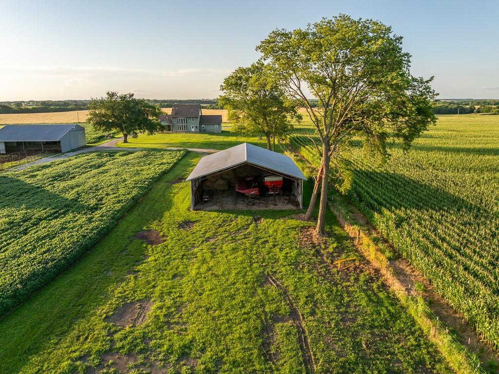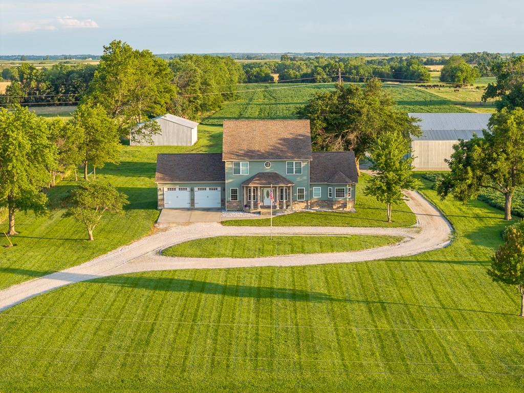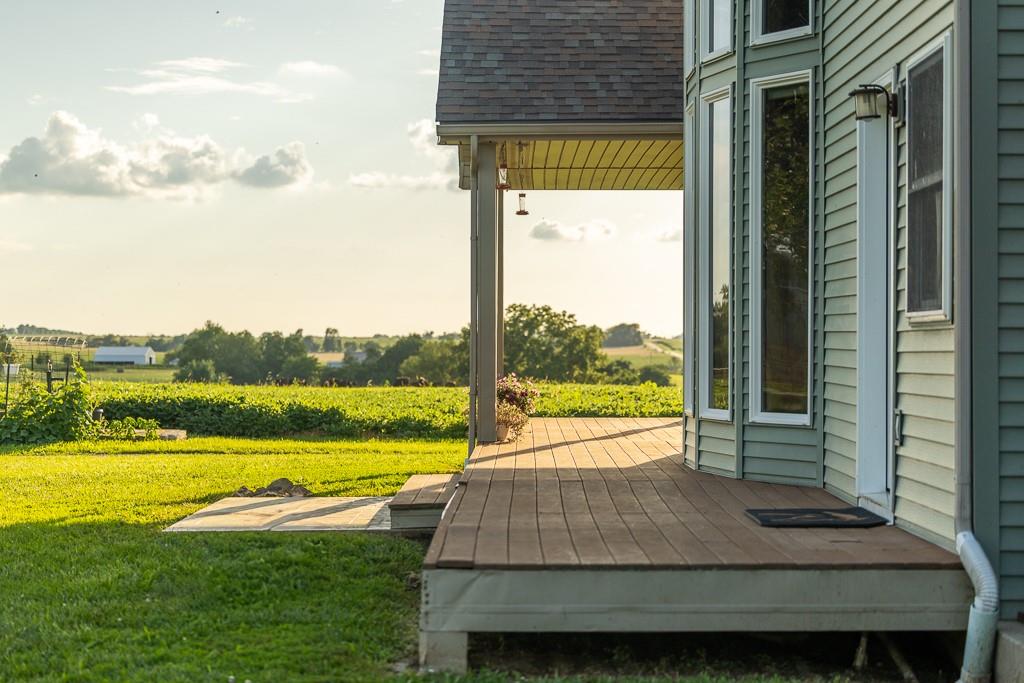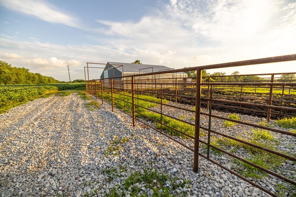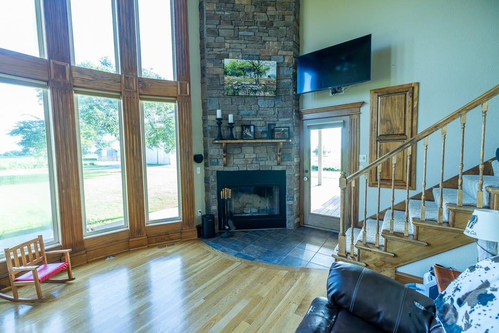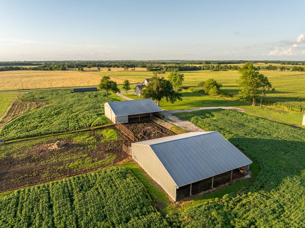 Nestled on 5 scenic acres east of Passaic on blacktop State Route D, this impressive 4-bedroom, 3-bath home offers the perfect blend of comfort, style, and functionality. Boasting 2,677 square feet across two stories, the home features high ceilings, hardwood floors, and detailed wood trim throughout, creating a spacious, light-filled layout. The main floor offers a large master suite and an open-concept kitchen complete with granite countertops, custom cabinetry, and a walk-in pantry. The upper level includes a loft-style common area and three generously sized bedrooms, perfect for family or guests. A walk-up unfinished basement offers flexibility for future expansion or storage, and the two-car garage adds practical convenience. Outside, enjoy the manicured lawn and large partially-covered deck, perfect for relaxing or hosting. A solar panel system adds energy efficiency and long-term value. For those with livestock or hobby farm dreams, the property is set up with two barns, a hay shed, and a welded pipe working system. The soil is very fertile, and outside the lawn, the ground is currently farmed. All of this is located in a quiet country setting just 50 minutes from the KC metro, and is within the Ballard School District. This well-maintained property checks all the boxes for rural living with modern convenience—don’t miss your chance to make it yours.