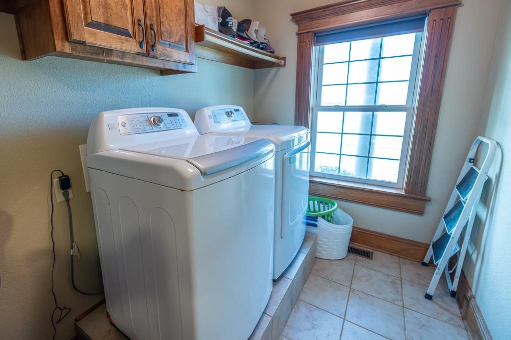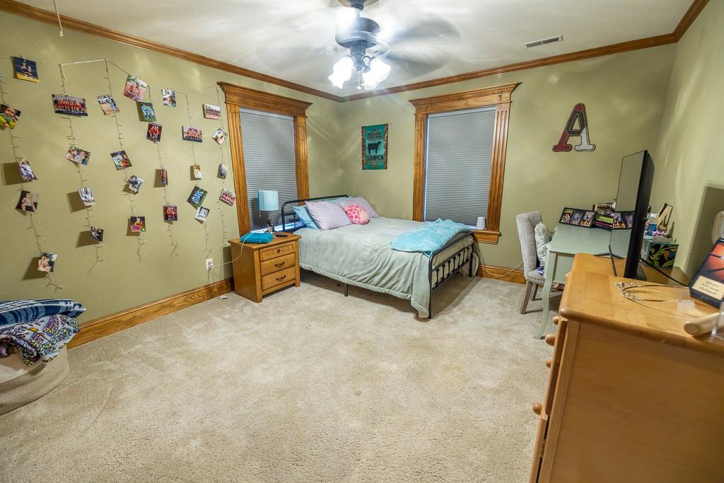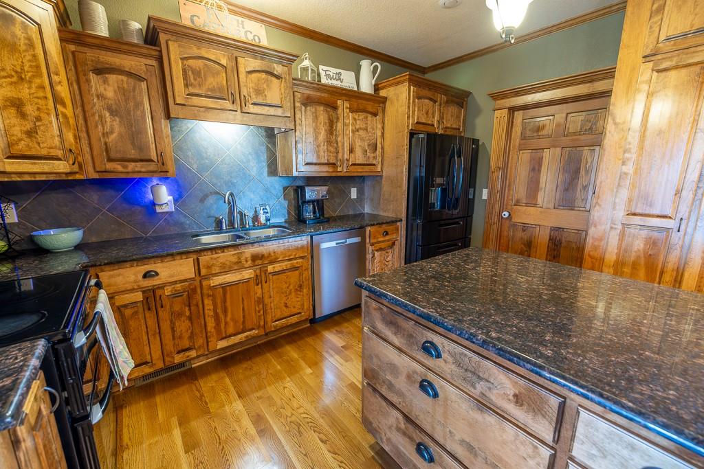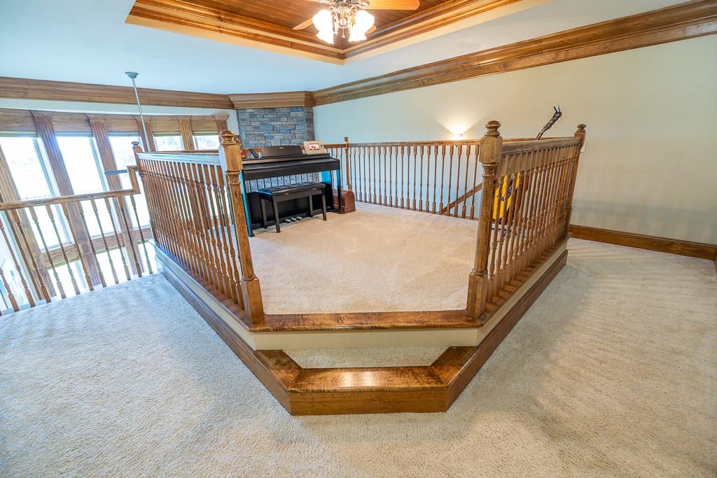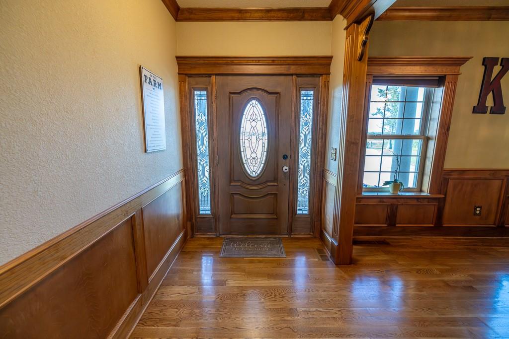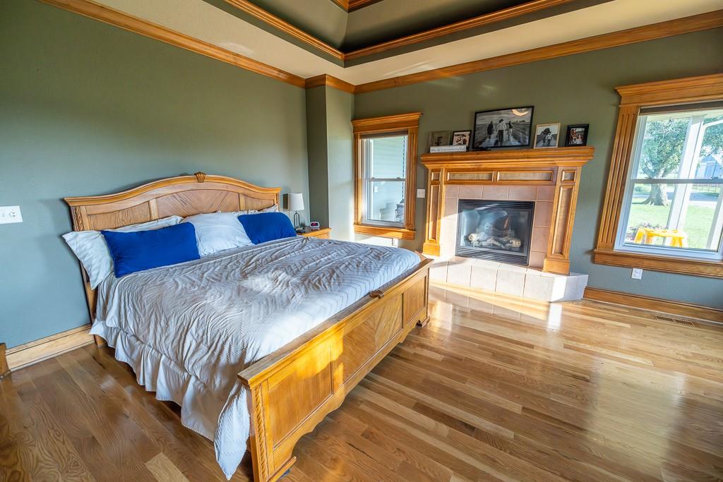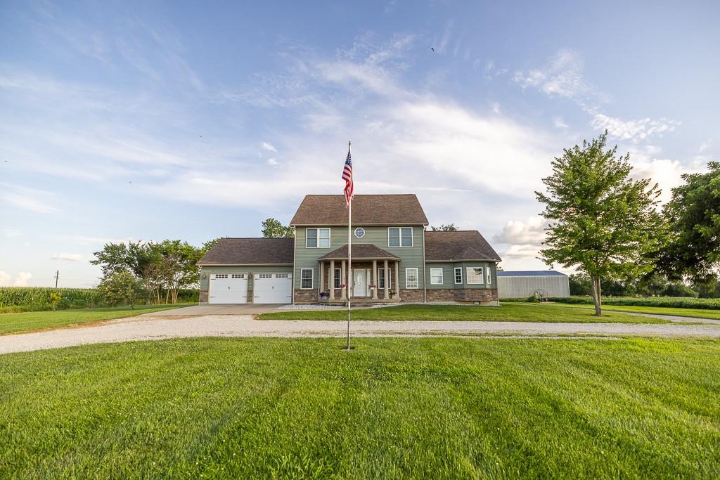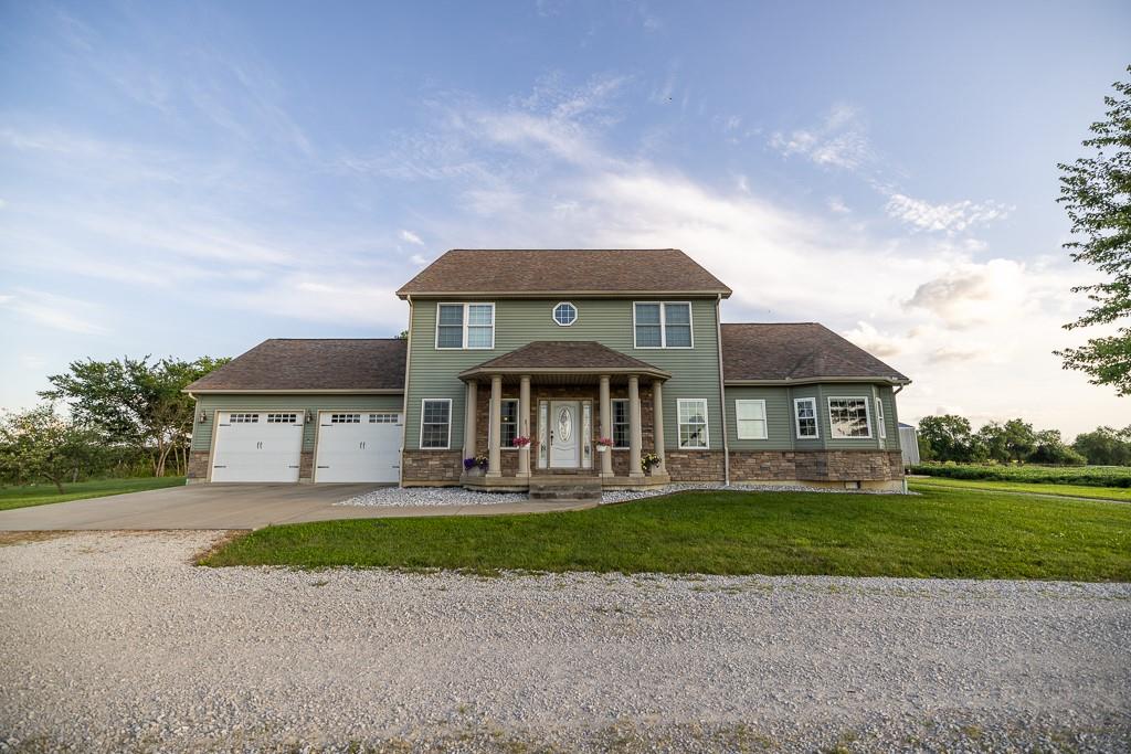 Nestled on 5 scenic acres east of Passaic on blacktop State Route D, this impressive 4-bedroom, 3-bath home offers the perfect blend of comfort, style, and functionality. Boasting 2,677 square feet across two stories, the home features high ceilings, hardwood floors, and detailed wood trim throughout, creating a spacious, light-filled layout. The main floor offers a large master suite and an open-concept kitchen complete with granite countertops, custom cabinetry, and a walk-in pantry. The upper level includes a loft-style common area and three generously sized bedrooms, perfect for family or guests. A walk-up unfinished basement offers flexibility for future expansion or storage, and the two-car garage adds practical convenience. Outside, enjoy the manicured lawn and large partially-covered deck, perfect for relaxing or hosting. A solar panel system adds energy efficiency and long-term value. For those with livestock or hobby farm dreams, the property is set up with two barns, a hay shed, and a welded pipe working system. The soil is very fertile, and outside the lawn, the ground is currently farmed. All of this is located in a quiet country setting just 50 minutes from the KC metro, and is within the Ballard School District. This well-maintained property checks all the boxes for rural living with modern convenience—don’t miss your chance to make it yours.