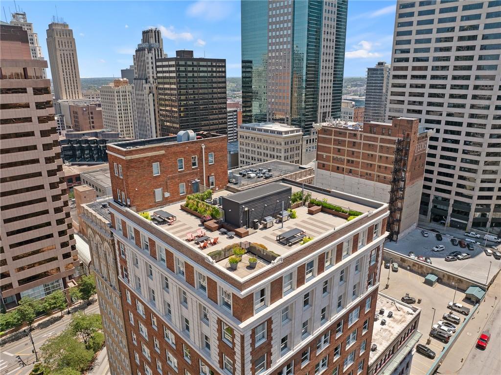 Welcome to 21 W 10th Street, #11C — a stunning 2-bedroom, 2-bathroom condo in the heart of downtown Kansas City. Perched on the 11th floor, this freshly painted unit boasts sweeping city views that shine day and night. The open-concept layout features large windows that flood the space with natural light, highlighting the modern finishes throughout. Enjoy unbeatable walkability to some of the city's best dining, nightlife, coffee shops, and landmarks — plus easy access to the streetcar. The building offers secure entry, rooftop access with panoramic skyline views, a bike room, basement storage, and dry cleaning valet service for added convenience. One dedicated parking spot is included, with additional spaces available for lease. If you're looking for a place to call home in the heart of the city, this one delivers.