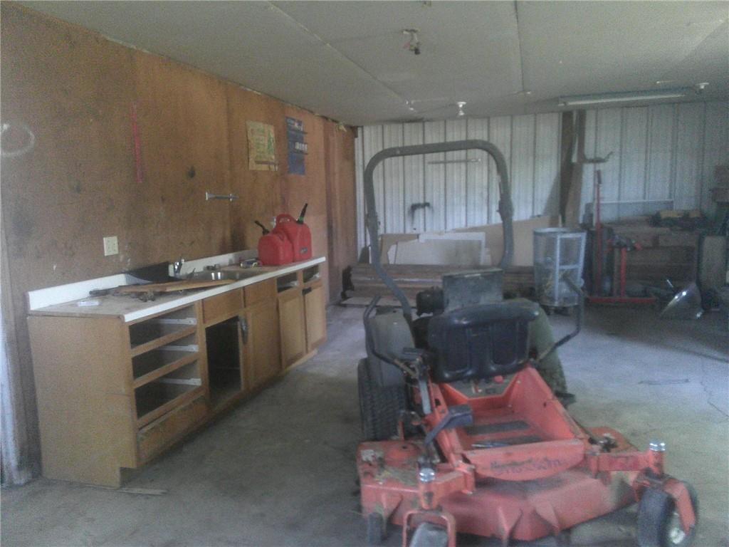 Garage featuring wooden walls