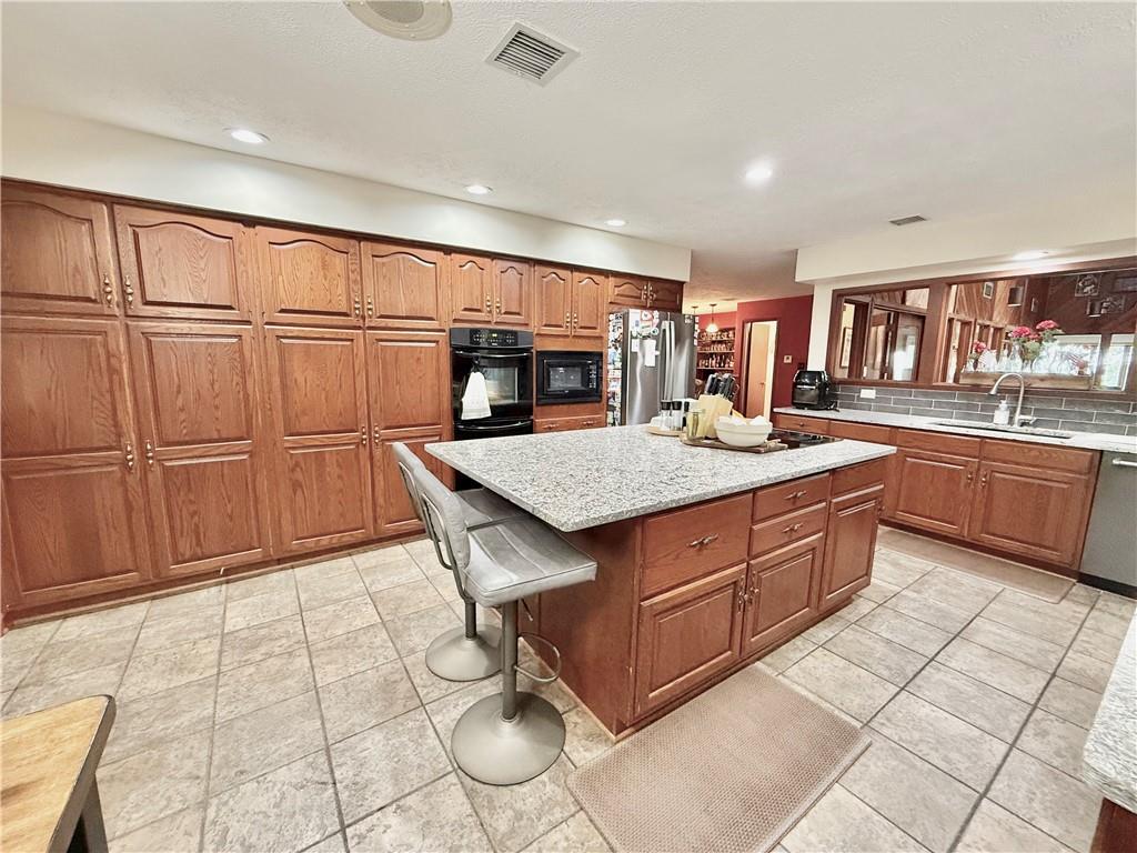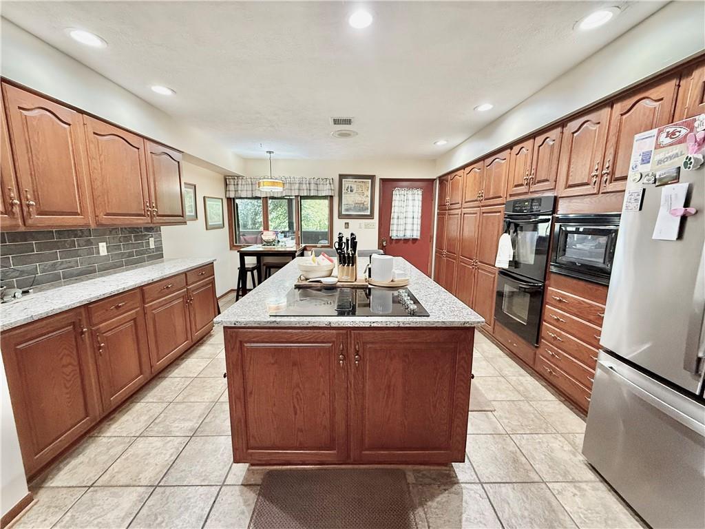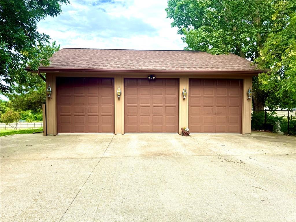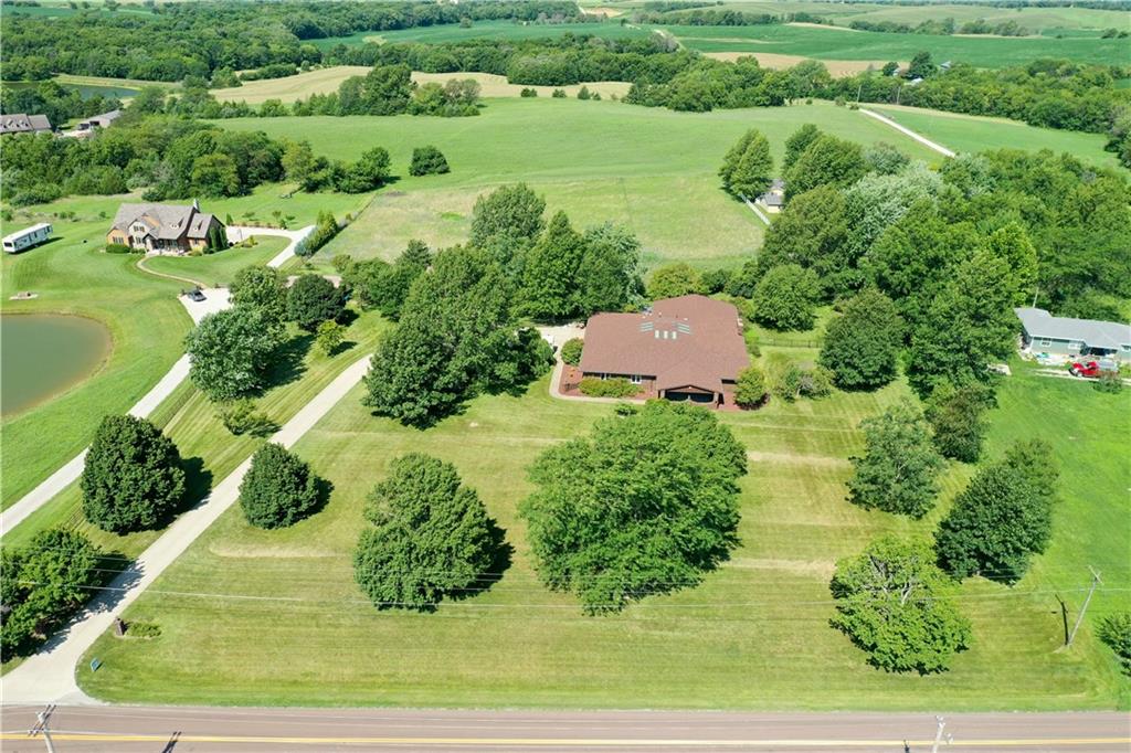 Stunning All-Brick Home on 5.13 Acres with Lake Views and Mini-Farm Setup This one-of-a-kind, all-brick home offers spacious living with over 5,000 sq feet, 4 large bedrooms, 2 full bathrooms, 2 half bathrooms, and a total of 6-car garage. Nestled on 5.13 acres, the property boasts a view of beautiful Mozingo Lake, a fenced pasture, and additional fenced yard—perfect for a mini farm or hobby animals. Inside, you'll find a huge great room with skylights at the heart of the home, flanked by two additional family rooms, providing endless space for living and entertaining. The large kitchen features ample cabinetry, a center island with breakfast seating, and is conveniently located near the main-floor laundry room with tons of built-in storage. The primary suite offers a walk-in closet and an updated ensuite bathroom with a walk-in shower. All bedrooms are generously sized, and there's even a dedicated office space ideal for remote work or study. Step outside to enjoy a patio with a hot tub, a workshop area inside one of the garages, and multiple outbuildings to support your farming or hobby needs. This is a rare opportunity to own a spacious, custom-built home with acreage, lake views, and endless possibilities—don’t miss your chance to see it!