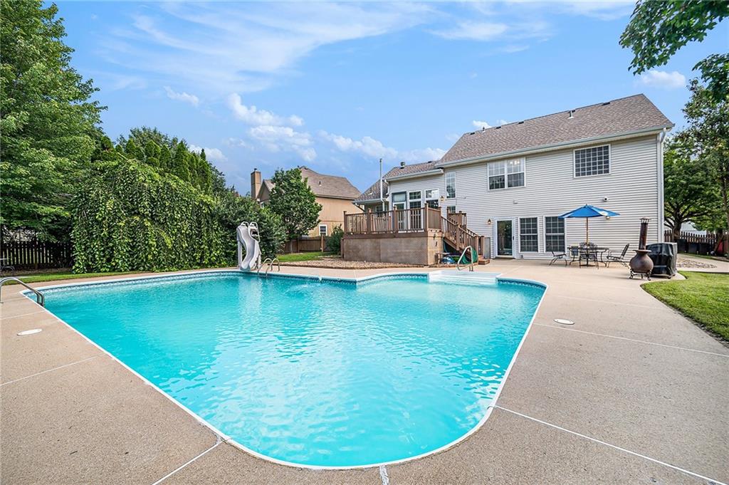 This stunning home is designed for both everyday comfort and unforgettable gatherings, highlighted by a luxurious swimming pool setting that’s sure to impress. Step inside to soaring ceilings and an abundance of natural light that fills the open living and dining spaces. The updated kitchen features granite countertops, a spacious island perfect for hosting, and access to a deck that overlooks the sparkling pool and patio below. Just a half flight down from the kitchen and dining areas, you’ll find a large, inviting family room complete with a built-in entertainment center, games closet, cozy fireplace, and a convenient half bath — all with direct access to the pool and outdoor oasis. Need even more space? The finished sub-basement offers a flexible second family room or non-conforming bedroom. Upstairs, the expansive primary suite includes a private bath, while two additional bedrooms and another full bath provide space for everyone. One of the secondary bedrooms even includes a generous loft with its own heating and cooling — ideal for a playroom, extra sleeping space, or homeschool area. Enjoy the new updates this home has to offer. Including, New A/C & furnace (2022), New water heater (2023), and New pool pump and chlorinator (2024) With its thoughtful layout, multiple living zones, and incredible pool area, this home checks every box for those who love to entertain and live in comfort.