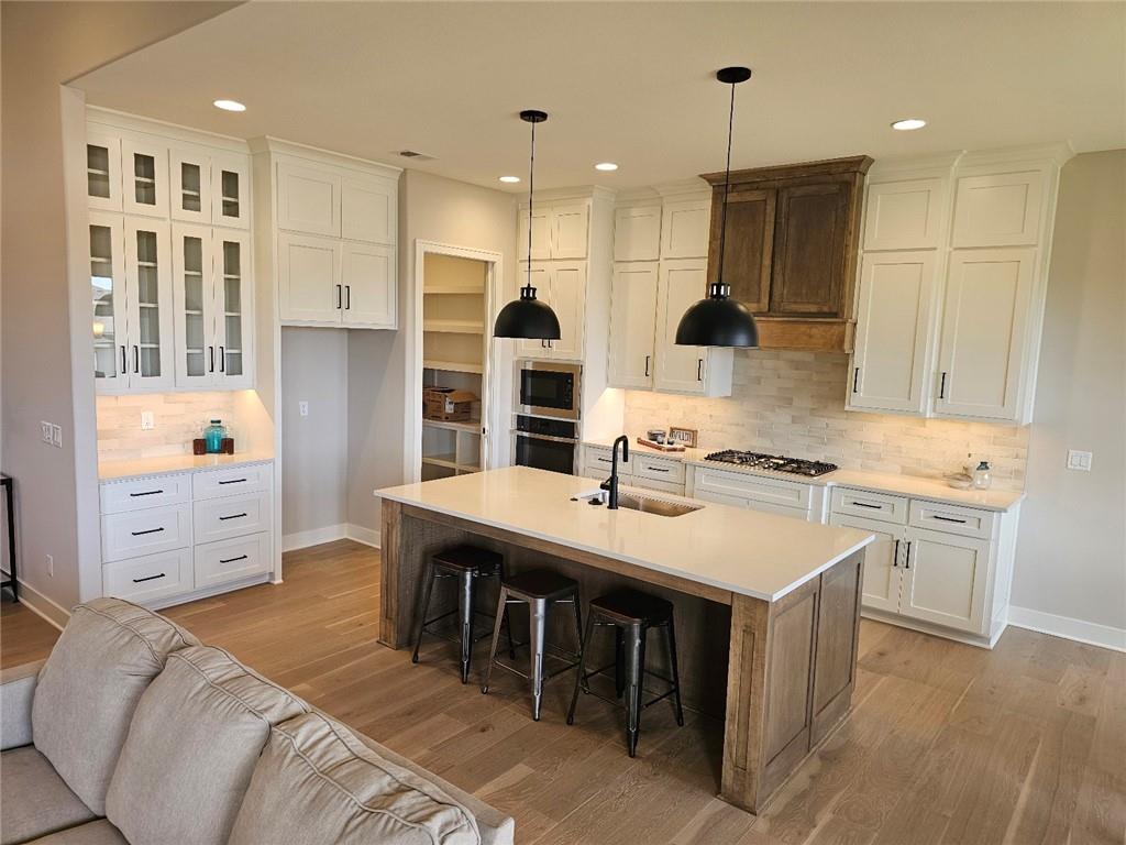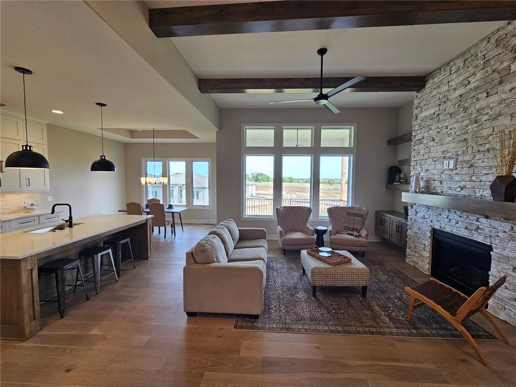 Pauli Homes brings their popular Sicilian 2 plan to Johnson Counties newest maintenance provided community, Prairie Canyon! Conveniently located just west of K-7 off of College Blvd.! This fabulous Rev. 1.5 sty. is on a cul-de-sac, perched on a ridge, backing east with extended beautiful views! Open concept: Great rm / Dining / Kitchen w/spacious island, large walk-in pantry, FP & includes a versatile 1st flr. guest rm. or Den. L-shaped lower-level design allows for plenty of recreation space & family/media area plus 2 bedrooms w/a share bath. Exceptional quality & value you've come to expect from from Pauli Homes in a signature Prime Development Co. Community!